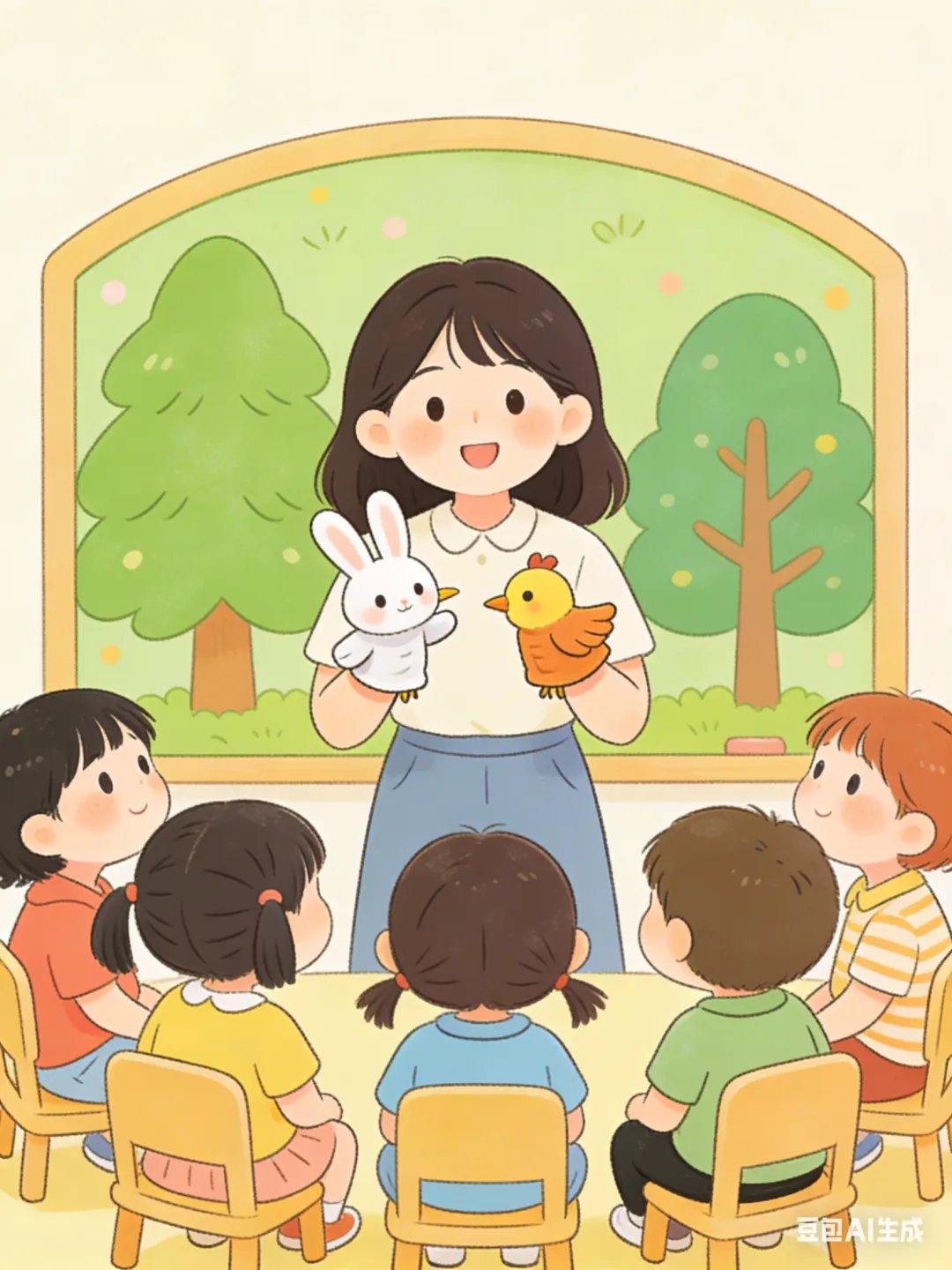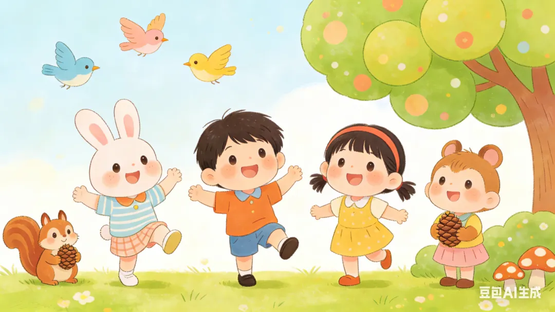 一、活动目标 1. 认知目标:知道森林里有树木、小动物,感知森林的美丽。2. 情感目标:萌发爱护树木、喜欢森林的情感。3. 能力目标:能跟随教师模仿小动物动作,参与简单的互动游戏。 二、活动准备 1. 物质准备:森林实景图片、树木玩具模型、常见小动物(兔子、小鸟、松鼠)手偶、舒缓的森林音效、彩色贴纸(树叶形状)。2. 经验准备:幼儿在日常生活中见过树木、认识常见小动物。 三、活动过程 1. 导入活动:情境激趣(5分钟) - 教师播放森林音效,出示森林实景图片:“小朋友们听,这是什么声音呀?我们一起来看看这片美丽的地方,这里有好多高高的树,还有可爱的小动物,它的名字叫森林。”- 出示小动物手偶,模仿动物语气打招呼:“我是小兔子,我住在森林里,森林是我的家;我是小鸟,我在树枝上唱歌,森林是我的家。”引导幼儿和小动物打招呼。 2. 探索活动:认识森林与小伙伴(10分钟) - 教师展示树木玩具模型,引导幼儿观察:“森林里有好多这样的大树,大树的叶子绿绿的,能给小动物遮太阳、挡风雨。”- 开展“森林小动物”模仿游戏:教师说动物名称,幼儿模仿对应动物的动作(如兔子蹦跳、小鸟飞翔),体验小动物在森林里的快乐。 3. 实践活动:给大树贴“爱心树叶”(10分钟) - 教师:“大树是小动物的家,我们要爱护它,给大树贴上漂亮的树叶,让它更茂盛吧!”- 幼儿人手一张树叶贴纸,在教师引导下贴到班级的“森林墙”(提前布置的空白墙面)上,边贴边说:“大树大树真漂亮,我来爱护你。” 4. 结束活动:总结与祝福(5分钟) - 教师带领幼儿参观“森林墙”,一起说:“森林里有大树,有小动物,我们要爱护森林,祝森林永远美丽!”- 播放轻柔音乐,幼儿跟随教师做放松动作,结束活动。 四、活动延伸 1. 区域活动:在美工区提供彩纸、胶水,让幼儿尝试撕贴“小树苗”;在益智区投放森林动物拼图。2. 户外活动:带领幼儿观察幼儿园里的树木,触摸树皮、观察树叶,感受树木的真实形态。