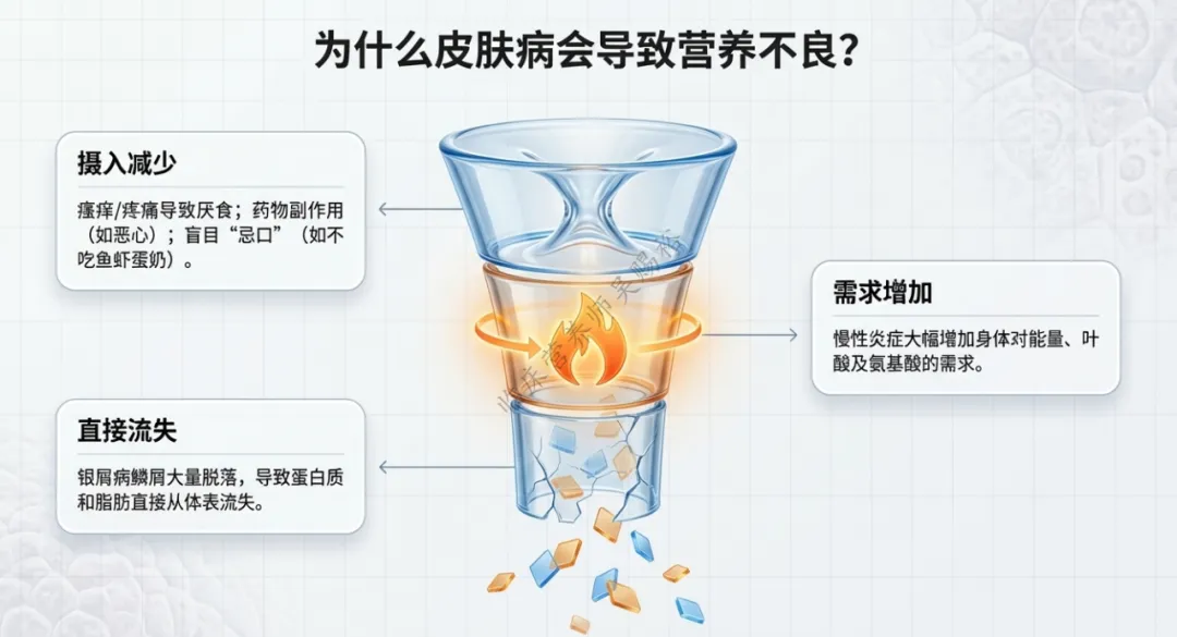 一旦营养供给或代谢状态发生紊乱,往往会直接影响皮肤屏障及免疫功能。