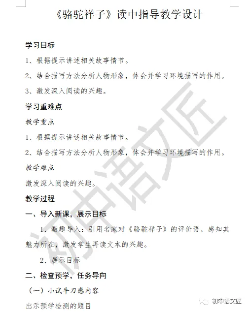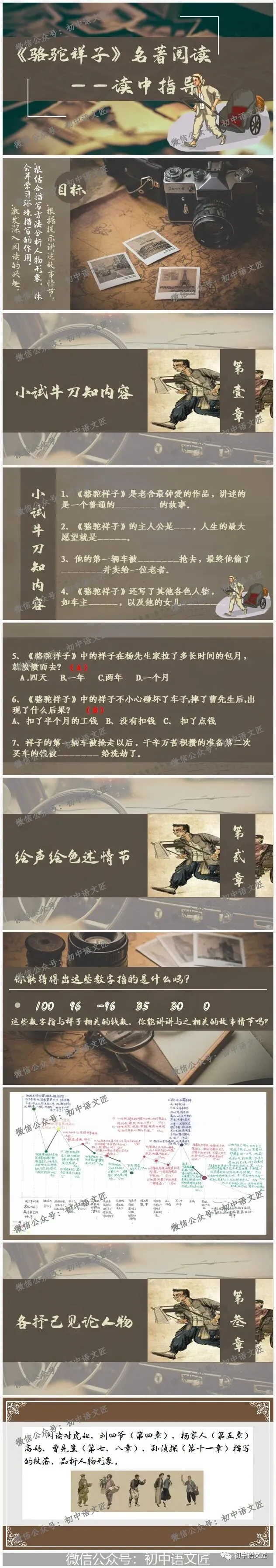 今天给大家带来的是H.老师制作的原创作品《<骆驼祥子>名著阅读——读中指导》。