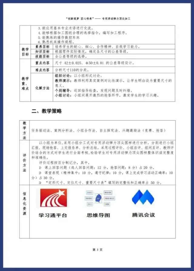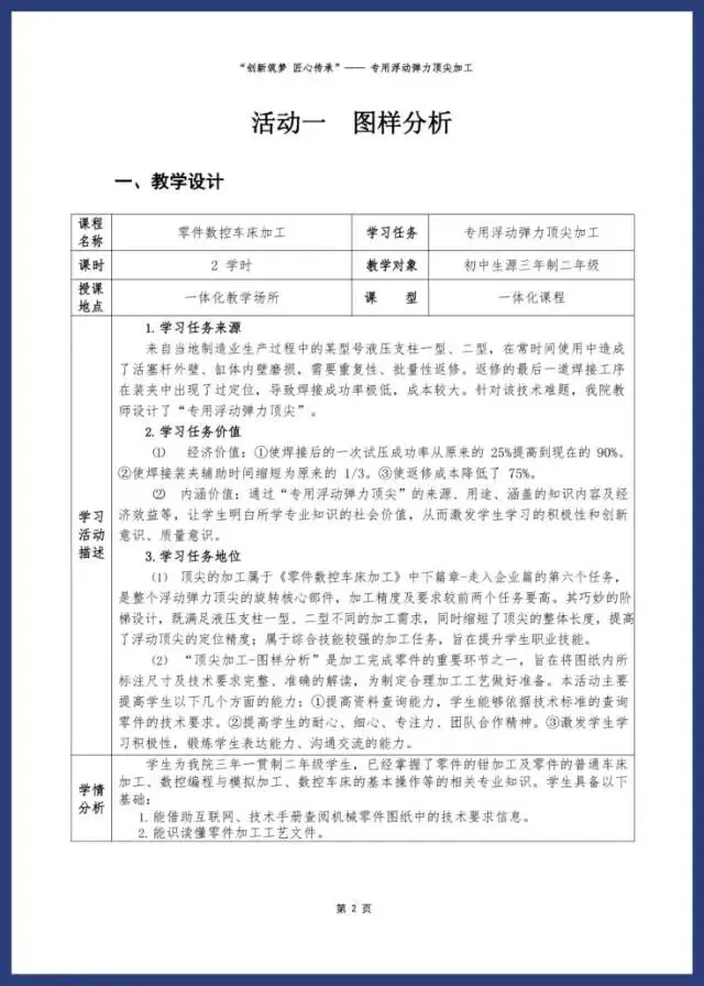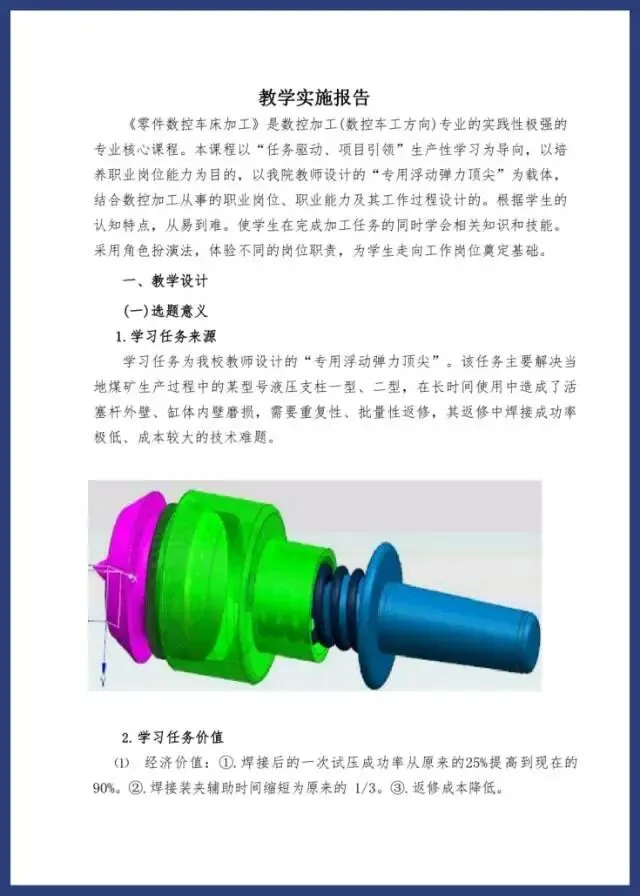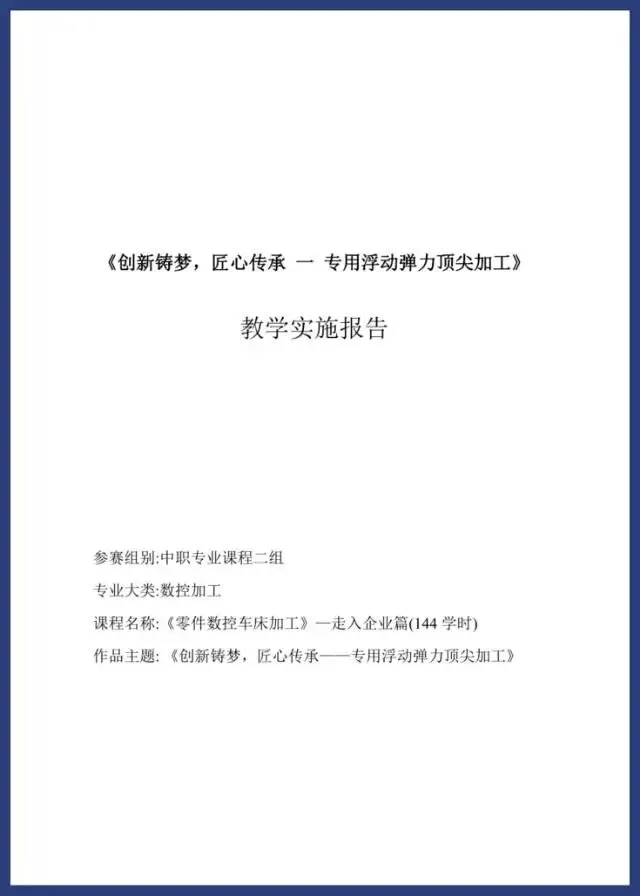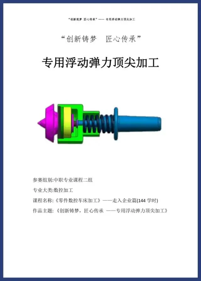 课程名称:《零件数控车床加工》一一走入企业篇(144学时)作品主题:《创新铸梦,匠心传承一一专用浮动弹力顶尖加工》