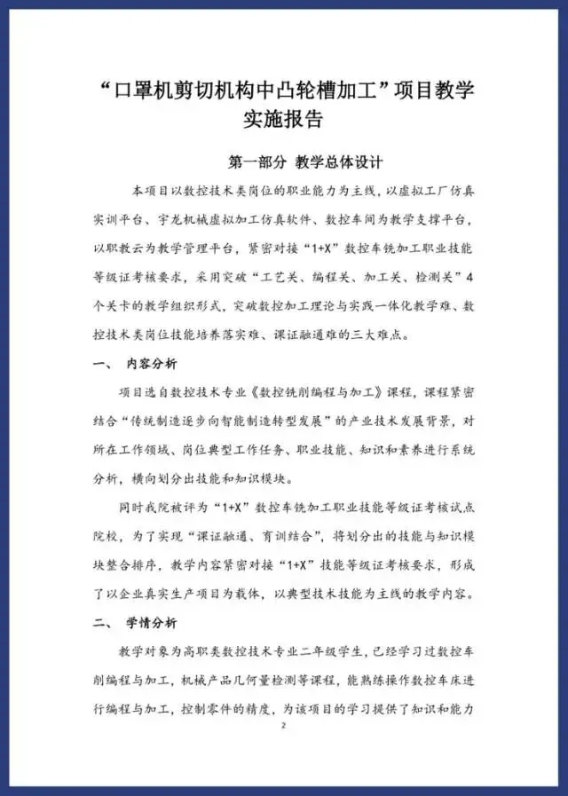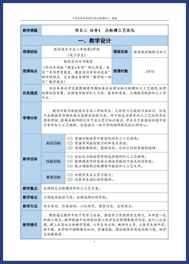 《数控铁削编程与加工》教案实施报告