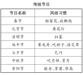 (2)能用简单的话向同学介绍这个节日的时间和习俗。