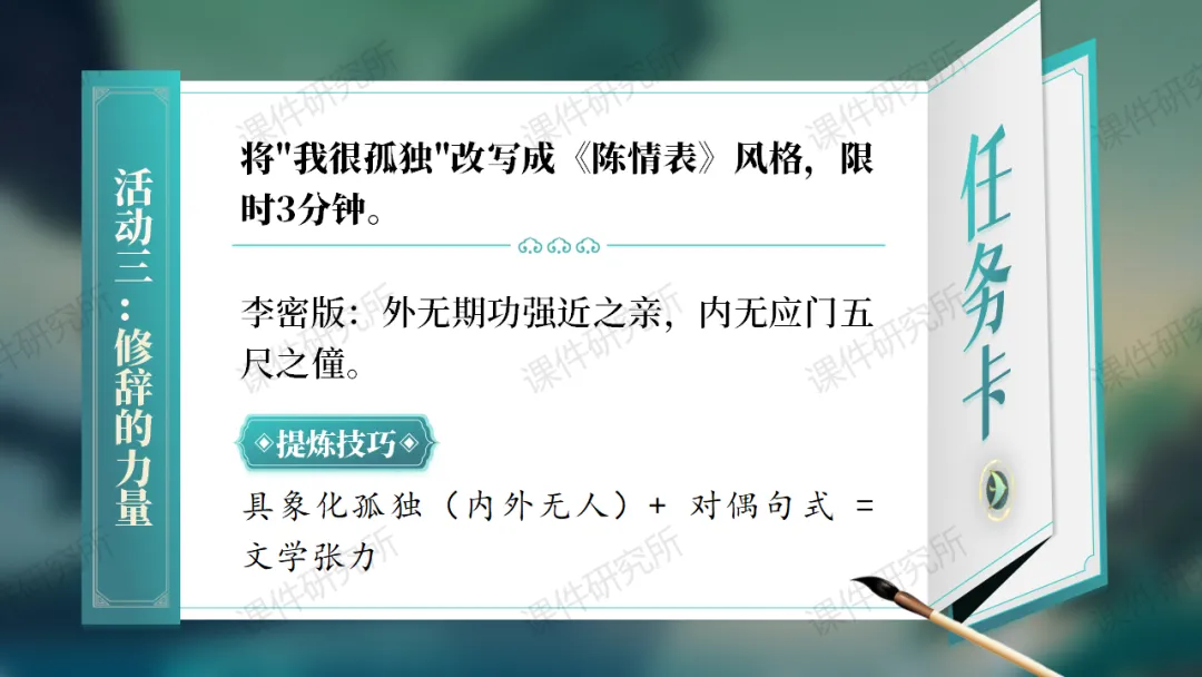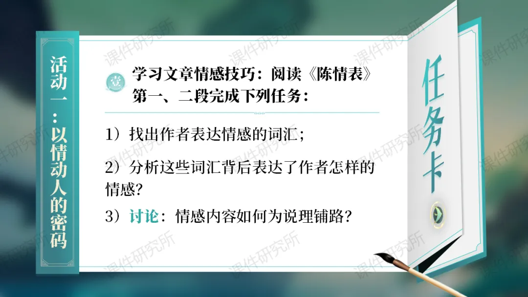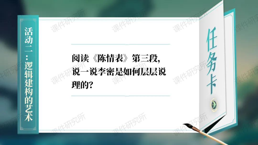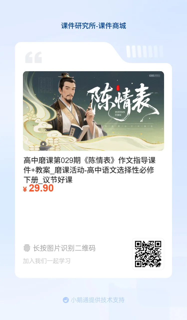 今天要分享的课件是高中语文必修下册《陈情表》。本课是一堂写作课。