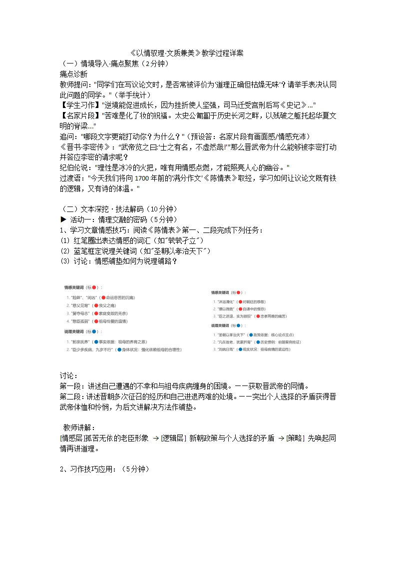本课件以《陈情表》为载体,聚焦议论文 “道理正确但枯燥” 痛点,按情境导入 — 技法解码 — 实战演练 — 价值升华四步设计。