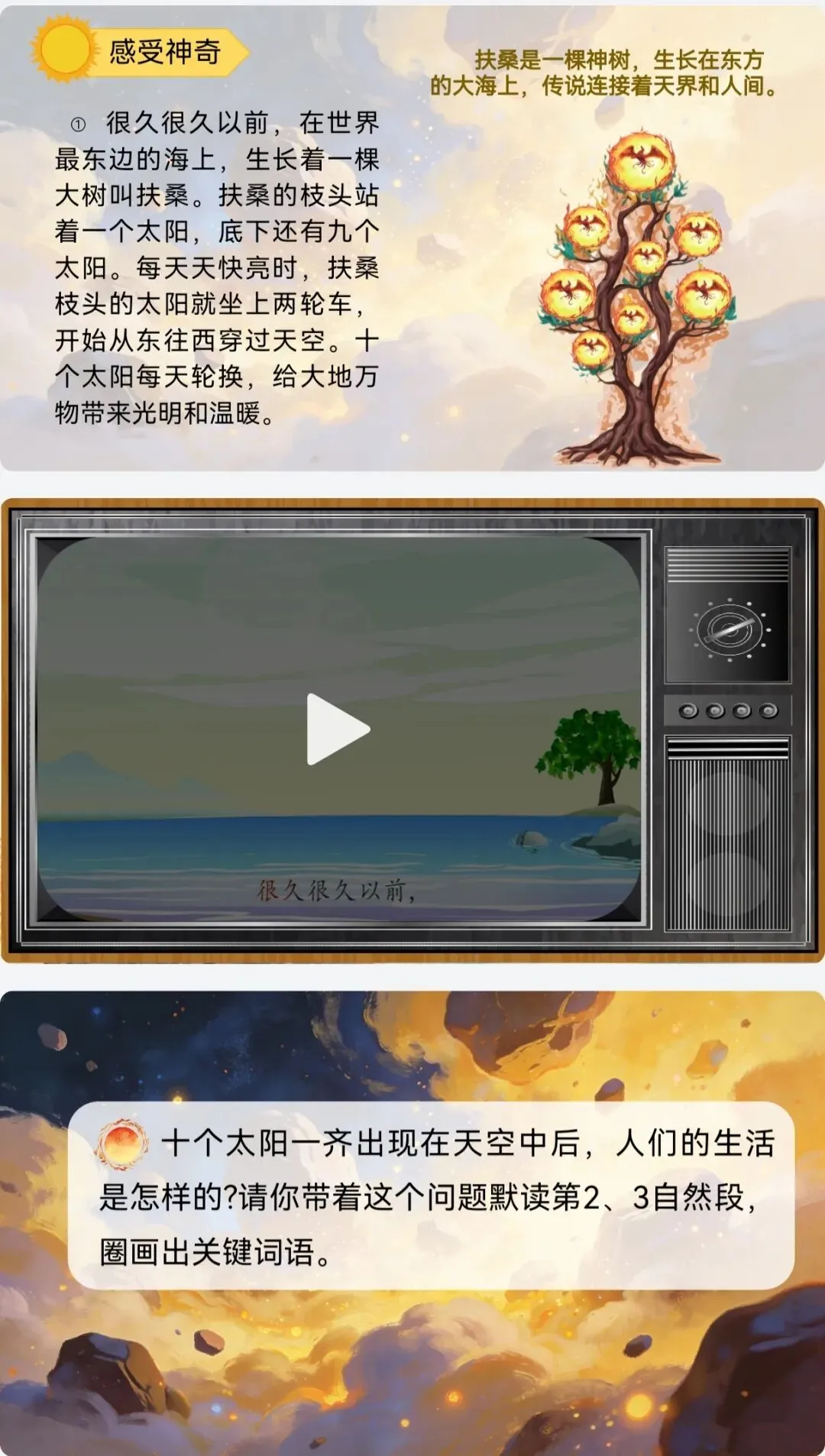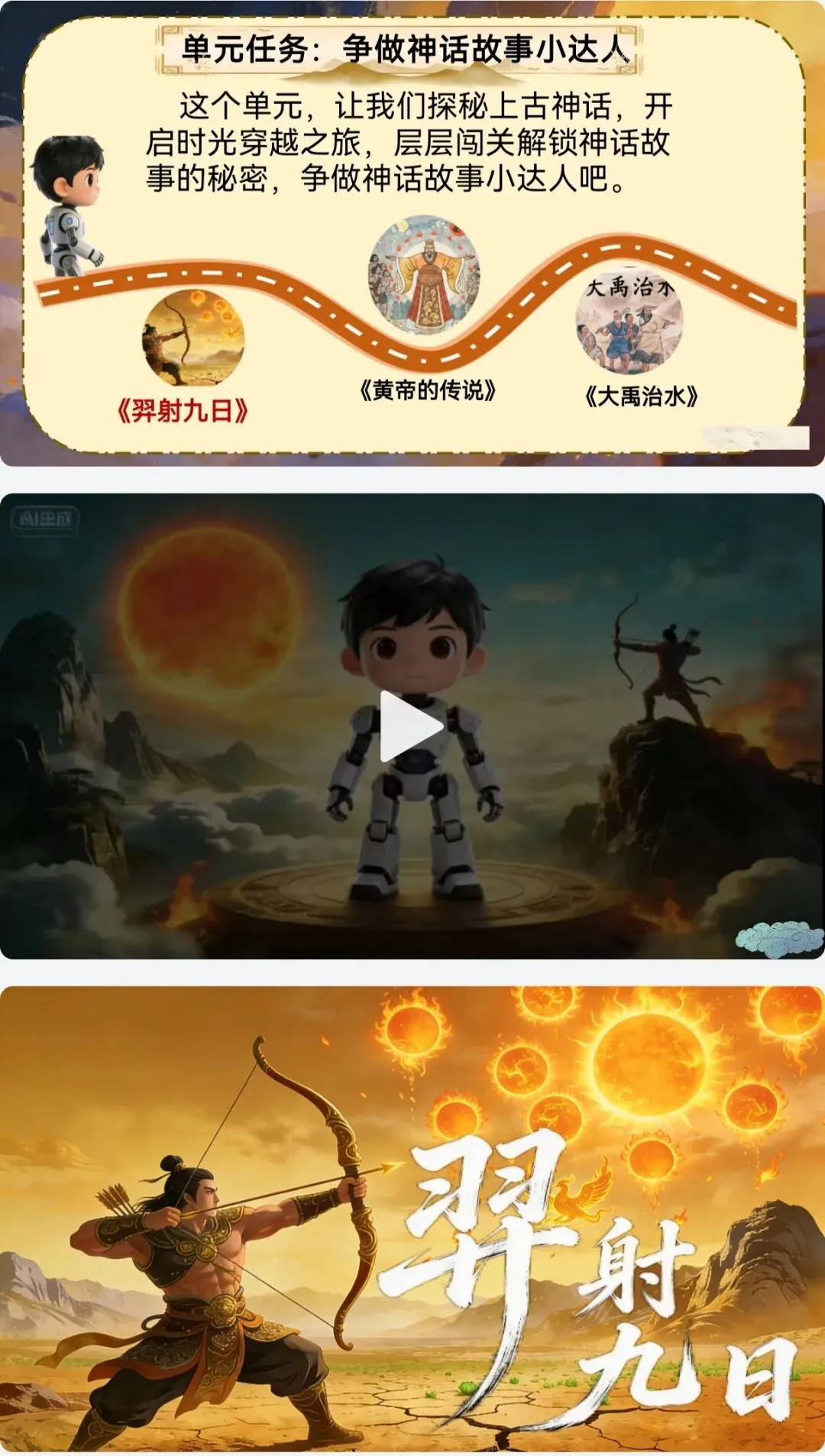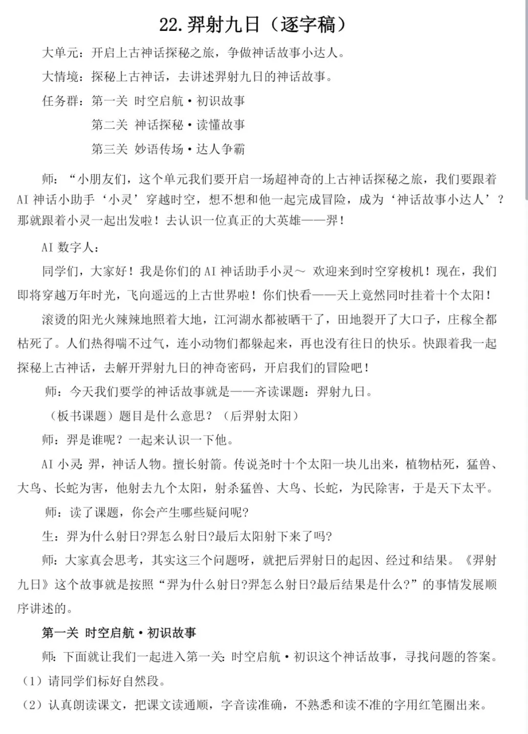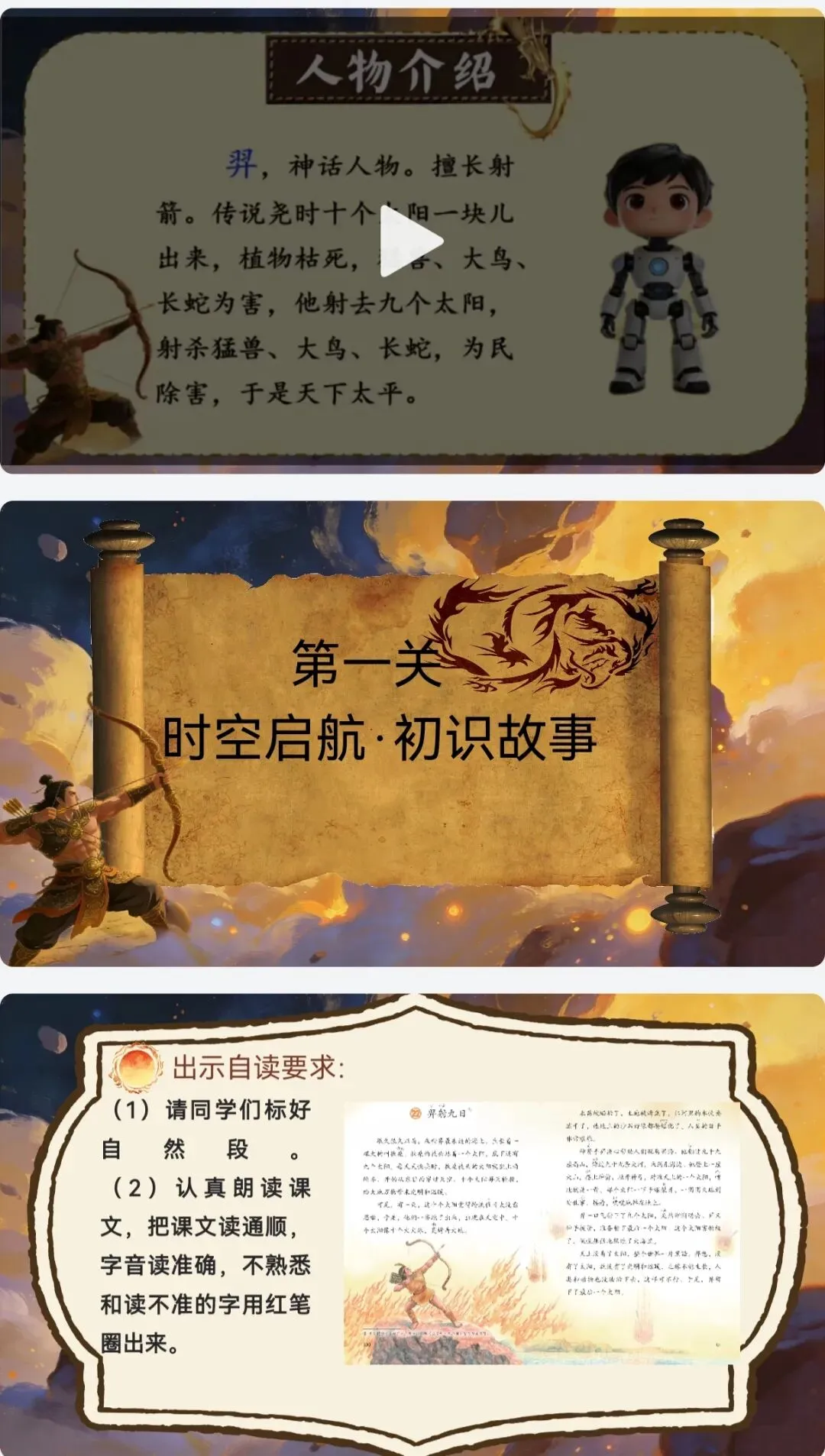 >AI助力二年级下册公开课《羿射九日》课件+教案+逐字稿+板贴+说课稿+反思+学习单