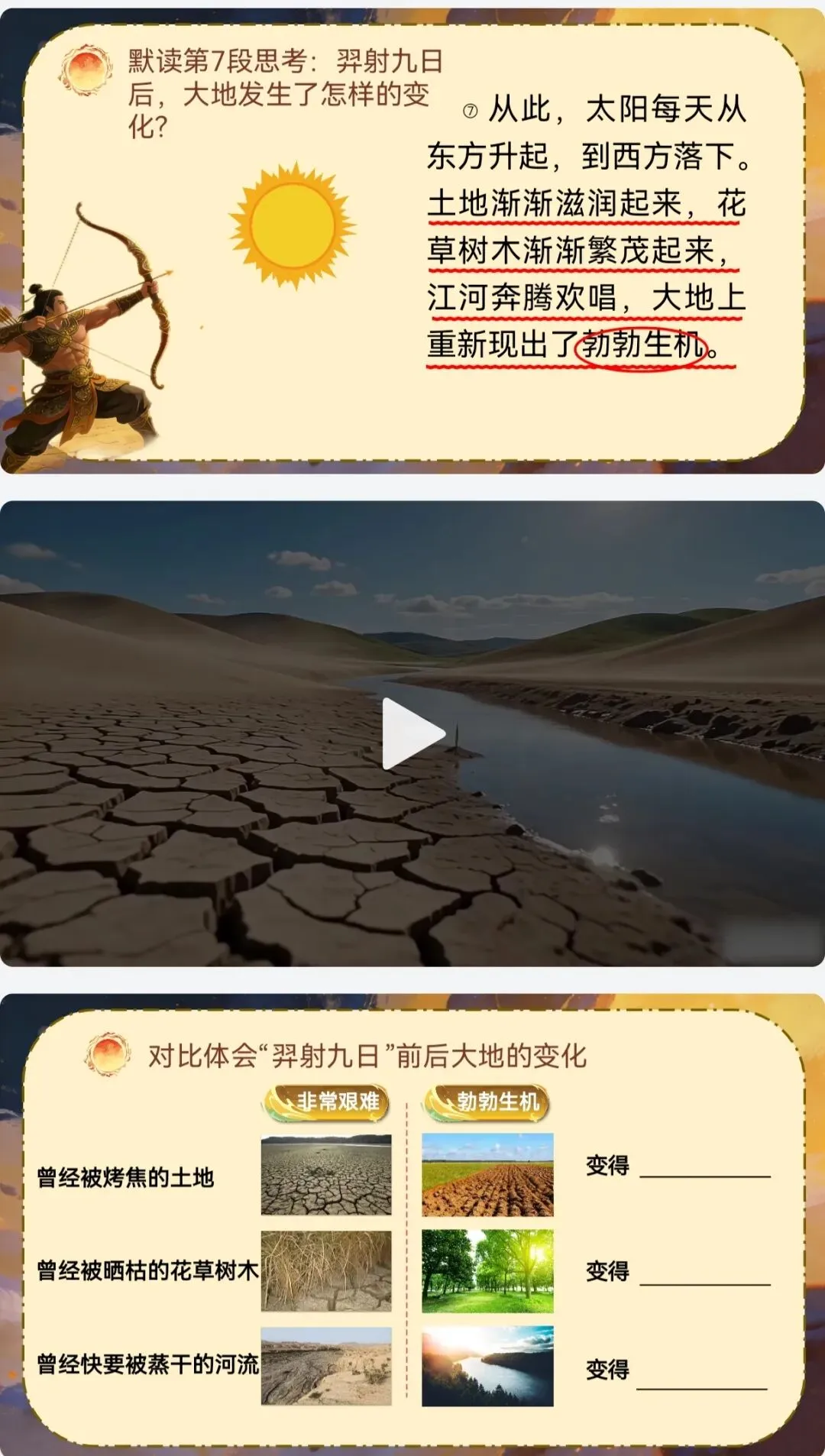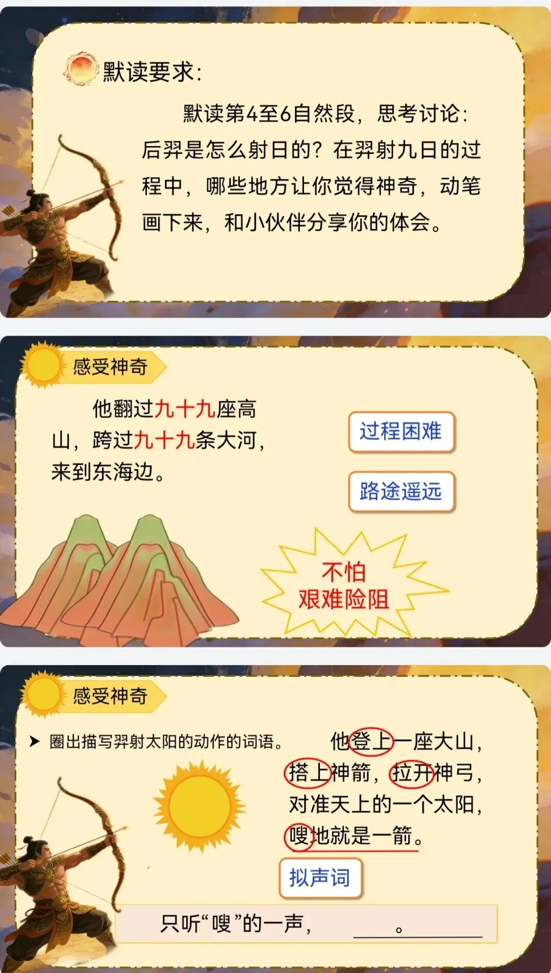 >AI助力二年级下册公开课《羿射九日》课件+教案+逐字稿+板贴+说课稿+反思+学习单