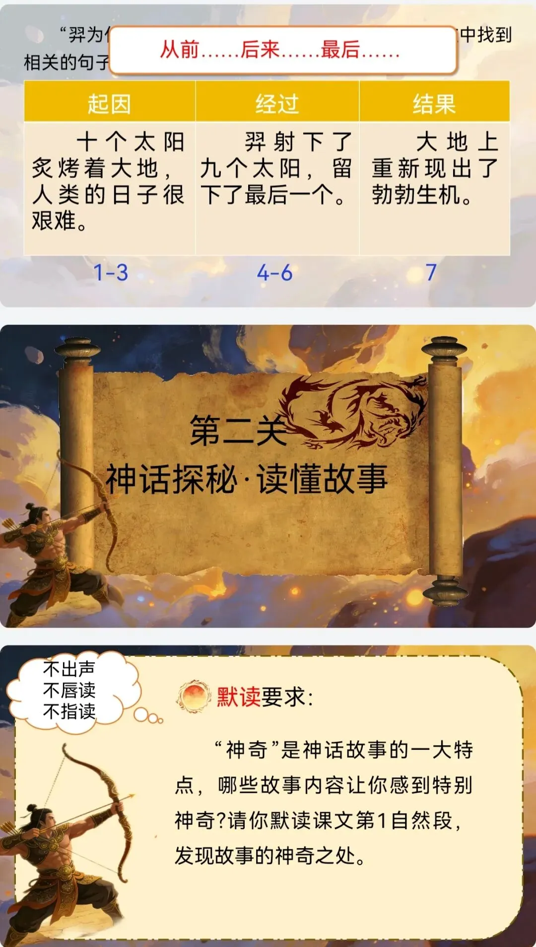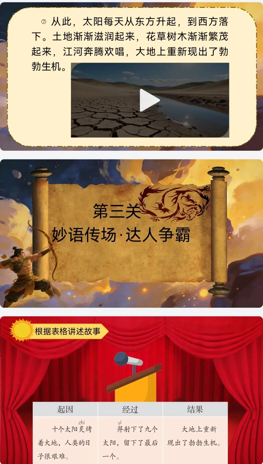 >AI助力二年级下册公开课《羿射九日》课件+教案+逐字稿+板贴+说课稿+反思+学习单