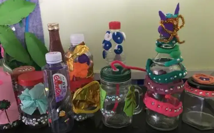3、请小朋友一起来制作动物瓶,要求是制作比5只小动物少的动物瓶。幼儿操作后讲述动物瓶上有几只小动物。