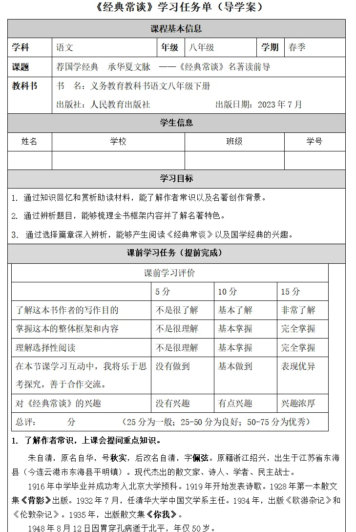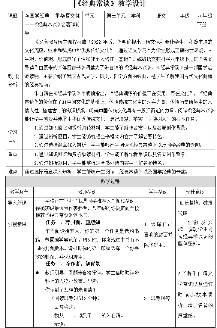 >【整本书阅读】《经典常谈》导读课课件+导学案+教学设计(最新全套)