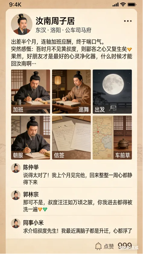 有趣的点:黄叔度比周子居小十几岁,却是周子居的”人生导师”,越是厉害的人,越愿意向比自己优秀的人学习,不管对方年龄多大;而且周子居经常说起这件事,说明黄叔度对他的影响真的很深。 |