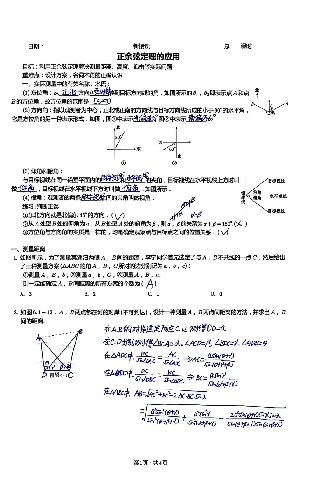 正余弦定理的实际应用问题教案