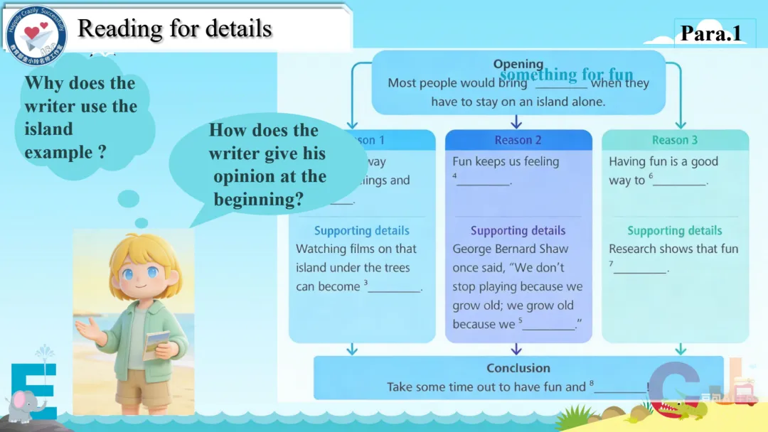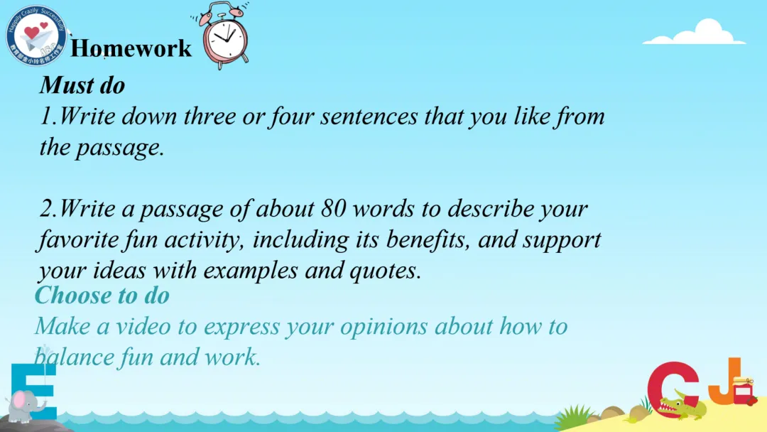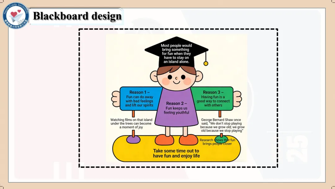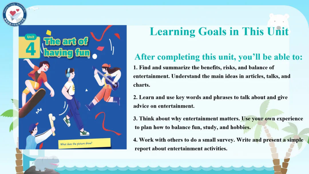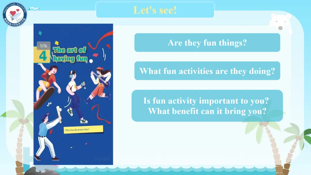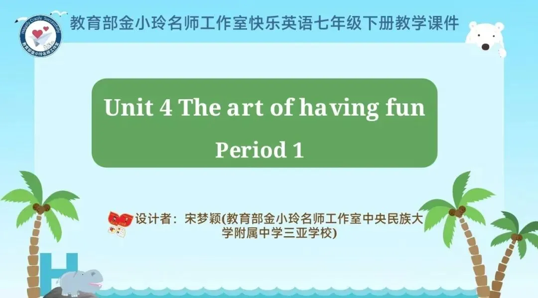 本期我们将推出由崔根萍、庄楠楠团队宋梦颖老师精心打磨的Unit 4 The art of having fun Period 1(Reading)希沃教学课件。让我们携手共进,一同探索英语教学的无限可能!期待与您共同成长,让英语课堂绽放更多精彩!