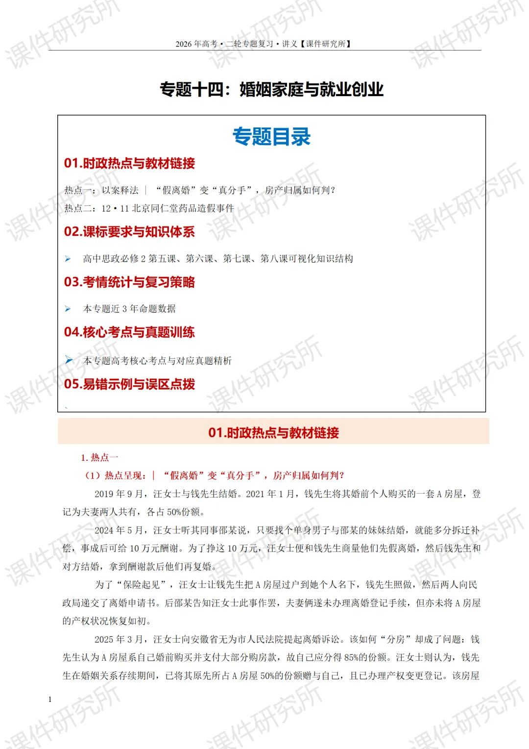 ⭕ 课件名称 | 专题14 婚姻家庭与就业创业