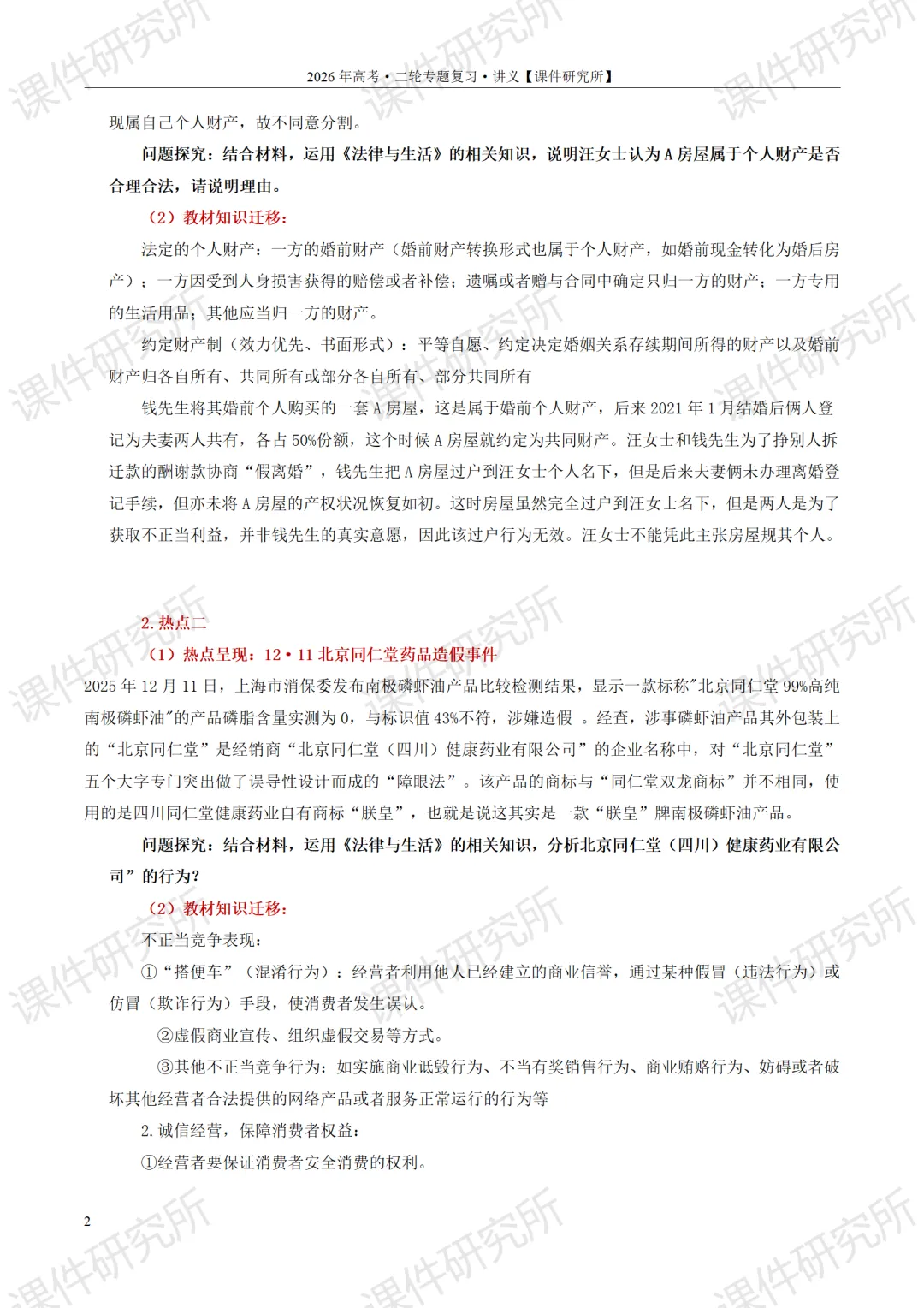 ⭕ 课件所属 |“自营系列”道德与法治中考二轮专题复习讲练测2026版