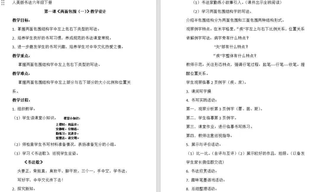 【书法教案课件】人美版小学书法六年级下册全册教案+课件,附免费下载链接