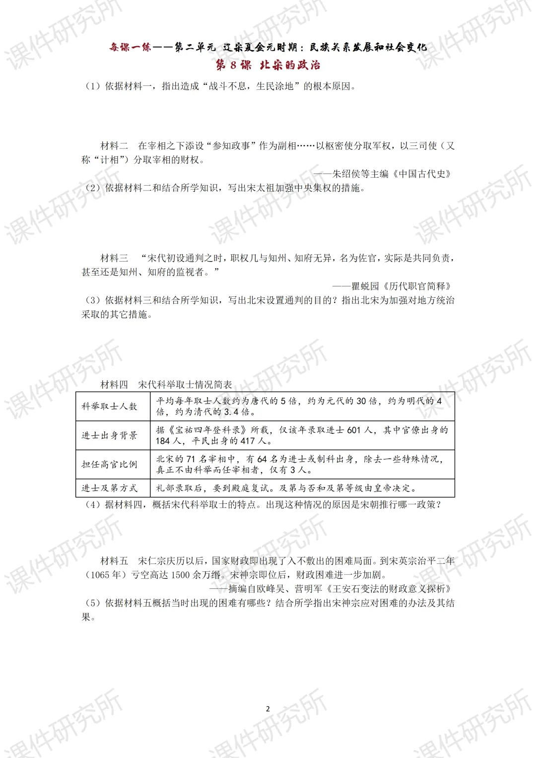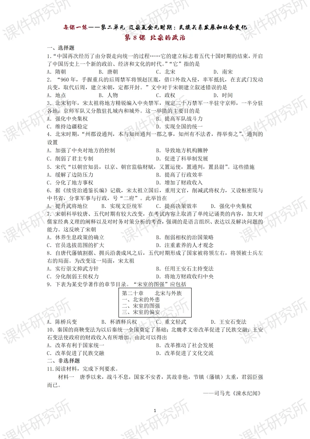 高效实用的七下《北宋的政治》课件,搭配练习题备课超省心! | 名师系列