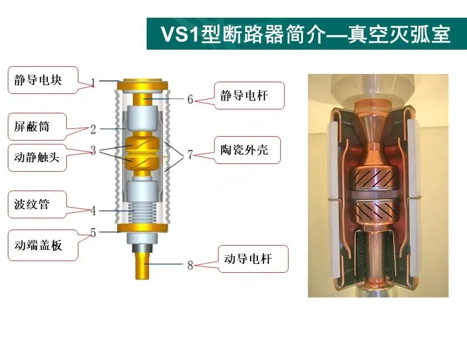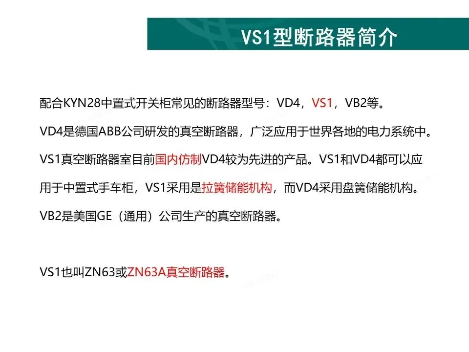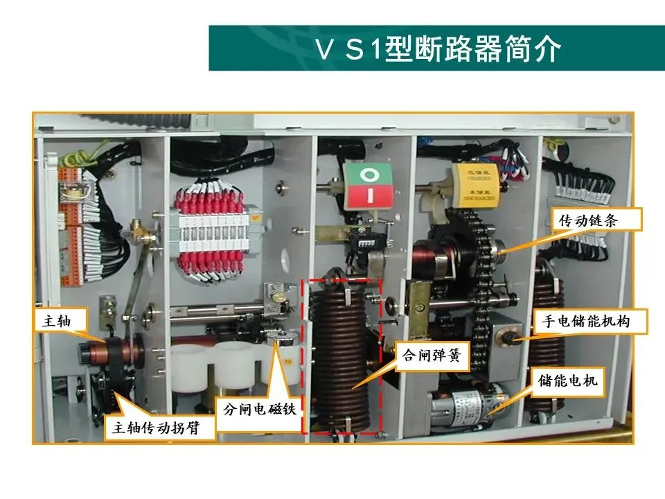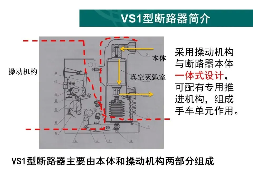 VS1真空断路器室目前国内仿制VD4较为先进的产品。VS1和VD4都可以应用于中置式手车柜,VS1采用是拉簧储能机构,而VD4采用盘簧储能机构。