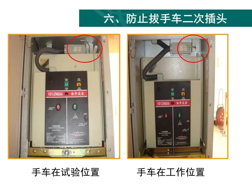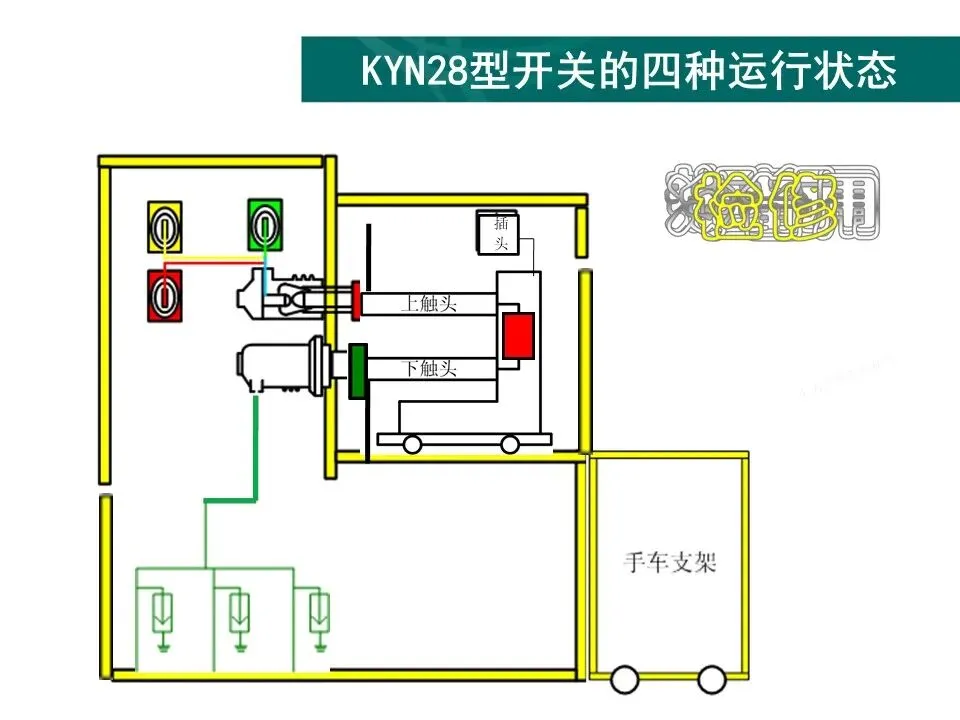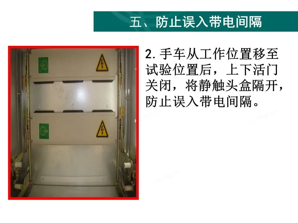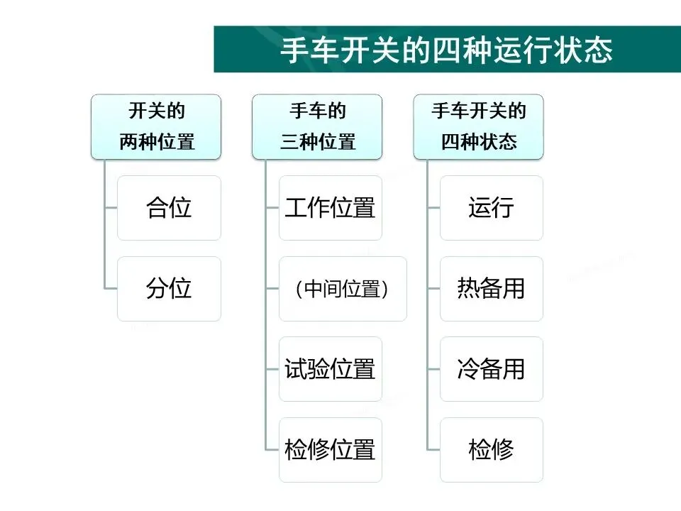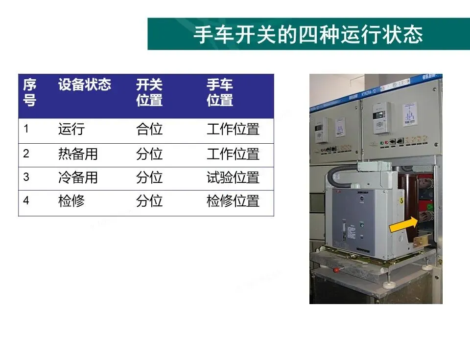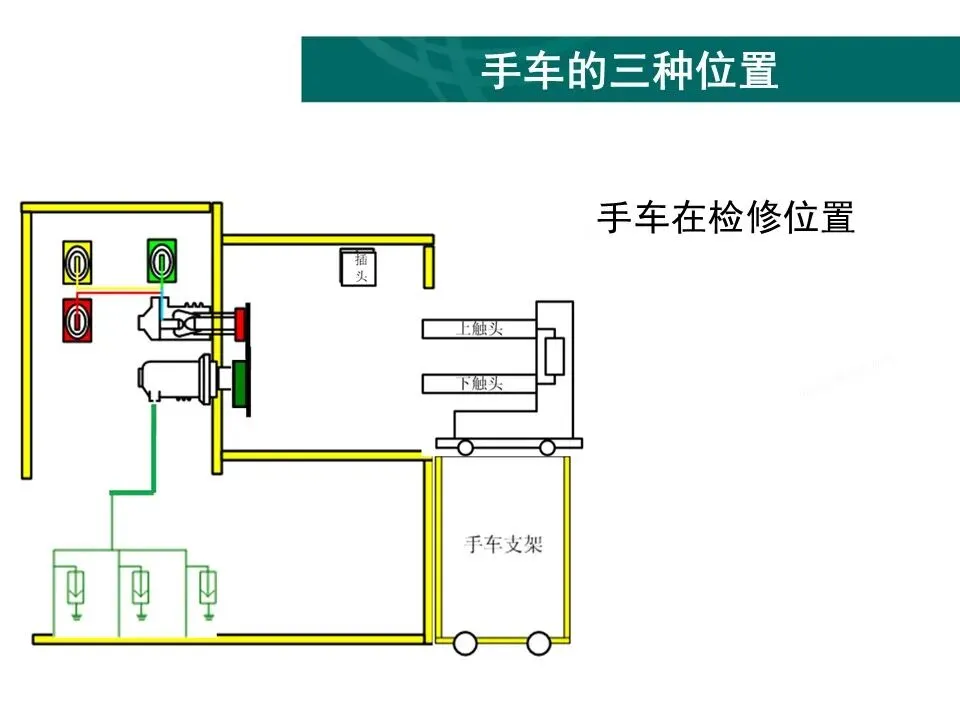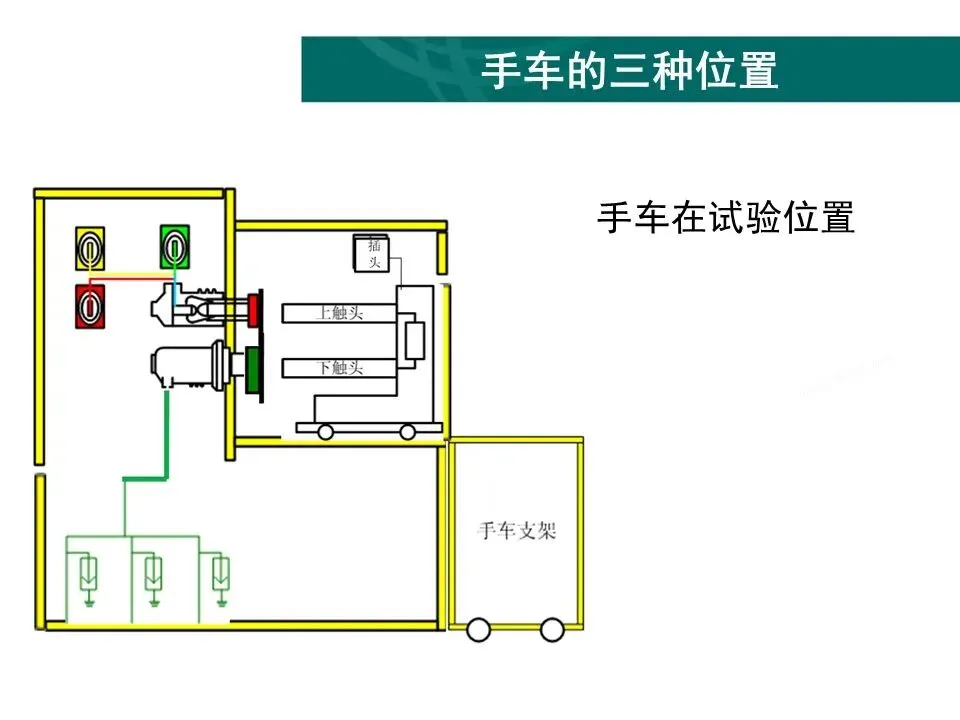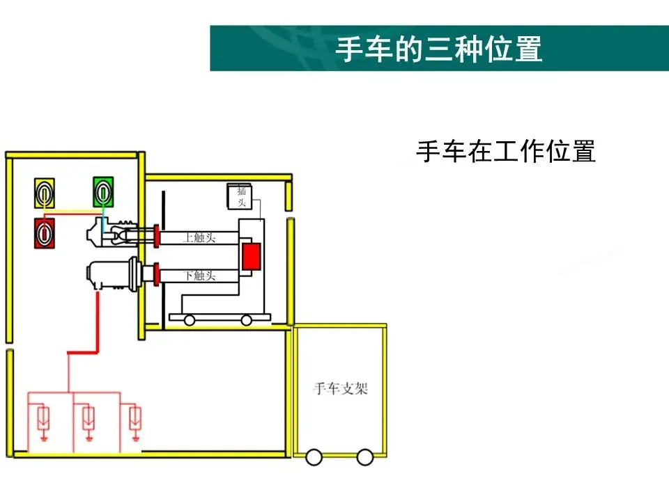 手车只有在工作位置或试验位置时,开关才能进行合、分闸操作。(中间位置,开关无法合闸)