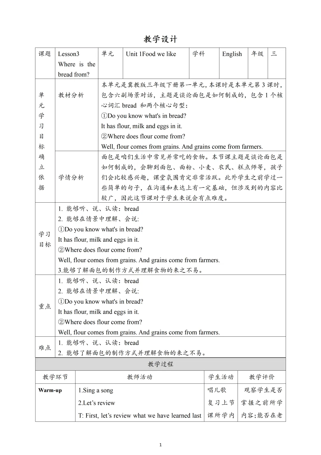 新改版 冀教版英语三年级下册教案含反思+课件+练习