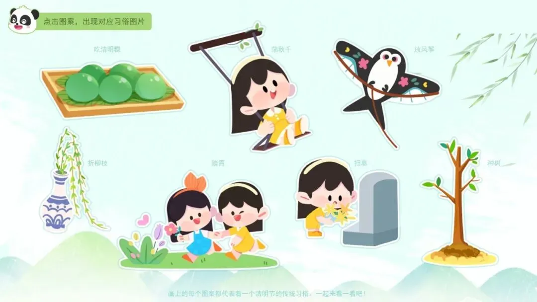 ——画上的每个图案都代表着一个清明节的传统习俗。一起来点一点,看一看吧!