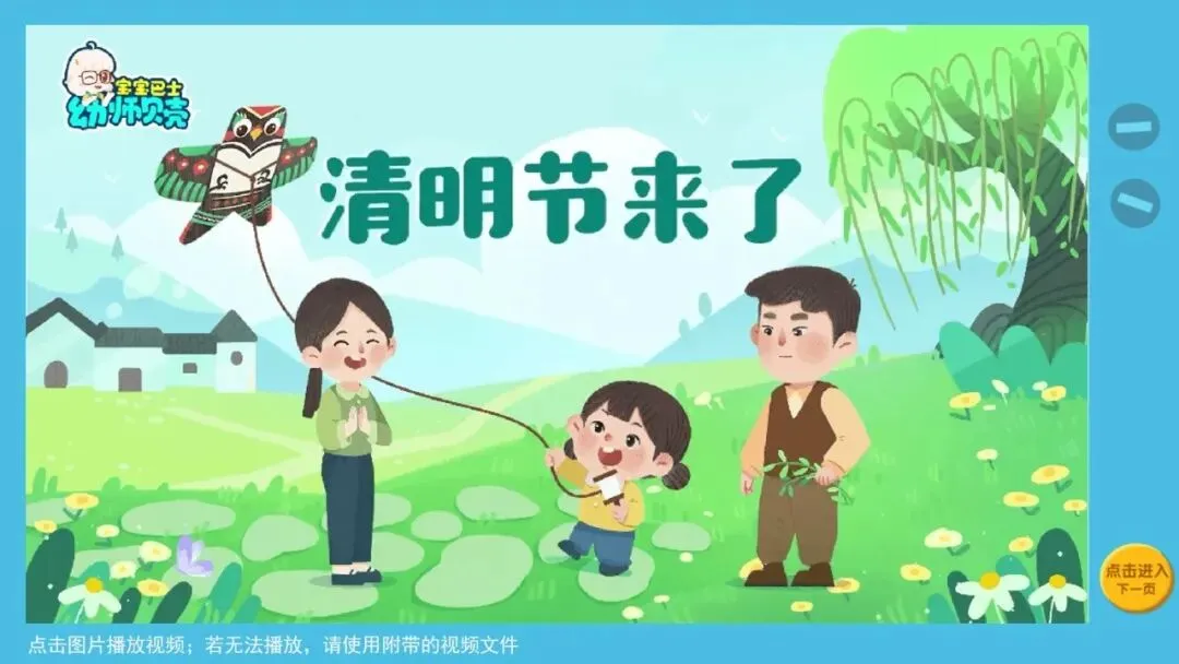 课件准备:“认识清明节”组图;“清明节的习俗”组图;《清明节来了》故事视频;“过清明”组图。