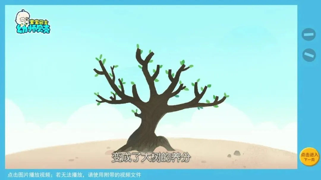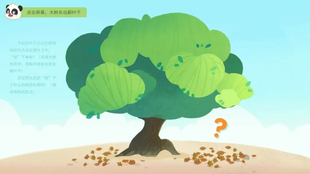 ——爸爸说干枯的叶子会以什么样特别的方式活在新叶子中,“留”下来呢?(变成大树的养分,帮助大树长出更多新叶子)