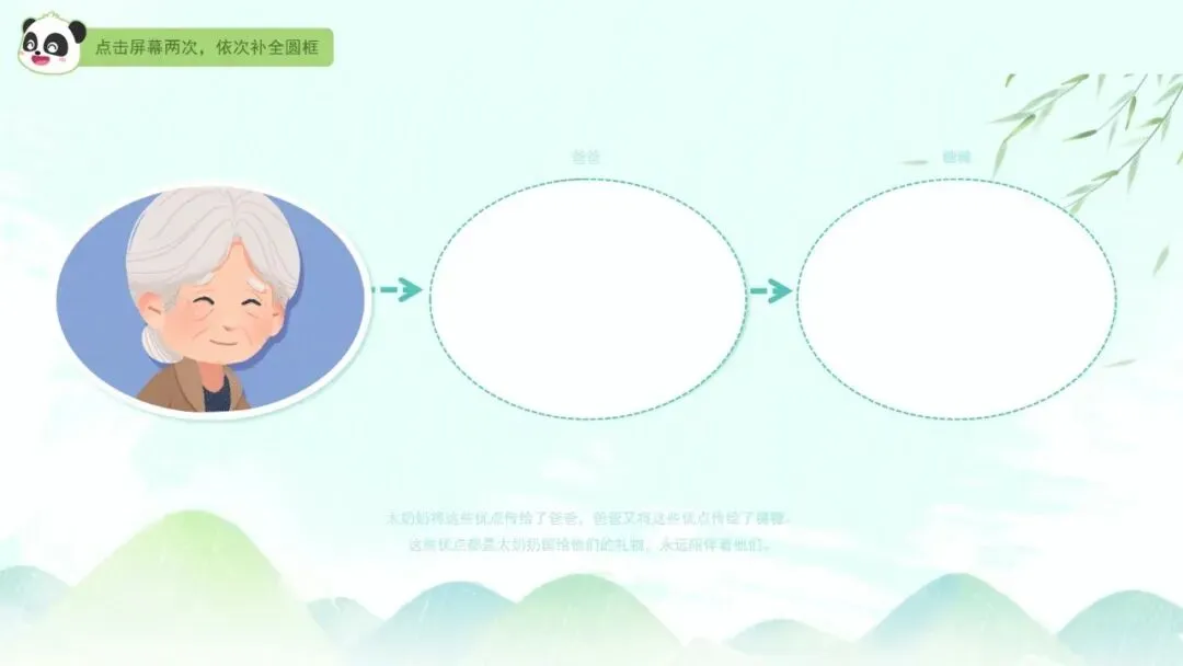 小结:太奶奶将这些优点传给了爸爸,爸爸又将这些优点传给了糖糖。这些优点都是太奶奶留给他们的礼物,永远陪伴着他们。