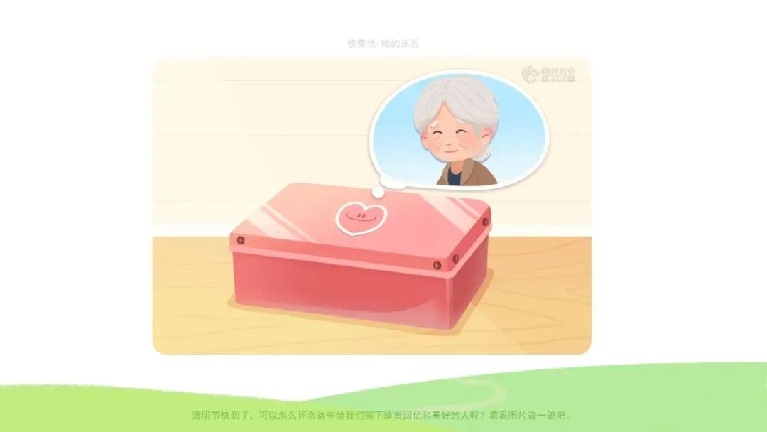 1.播放故事视频及图片《清明节来了》第二段,引导幼儿以乐观积极的心态正确认识死亡。