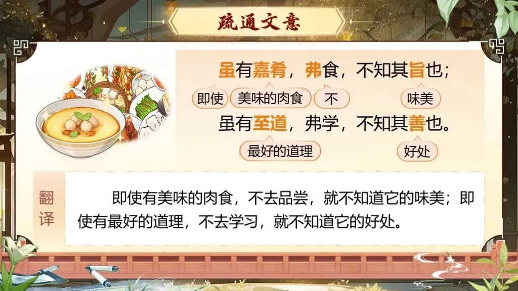 >「��公开课一等奖」八下《虽有嘉肴》课件 | 嘉肴不食不知味,至道弗学不知善!