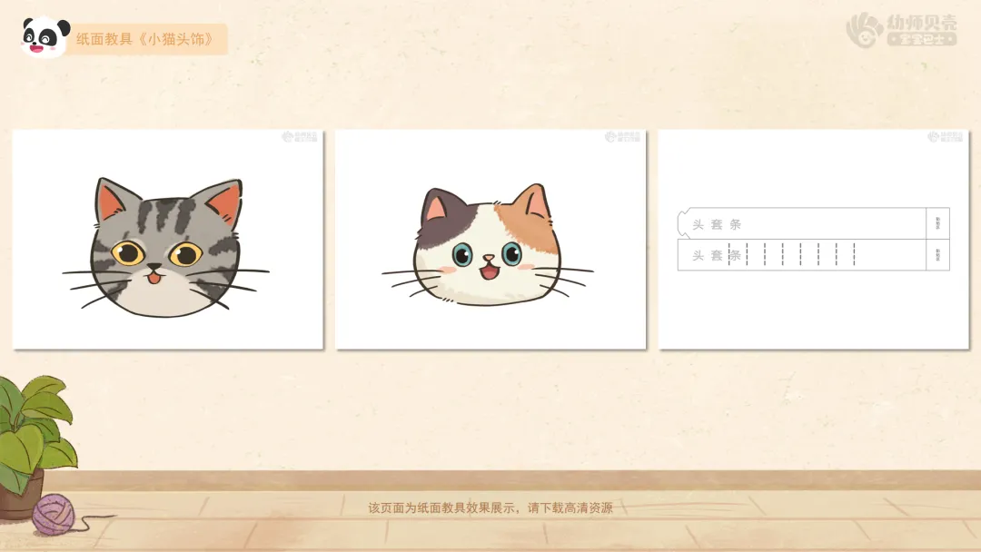 l材料准备:《小猫头饰》(共2款,每组幼儿各一份)。