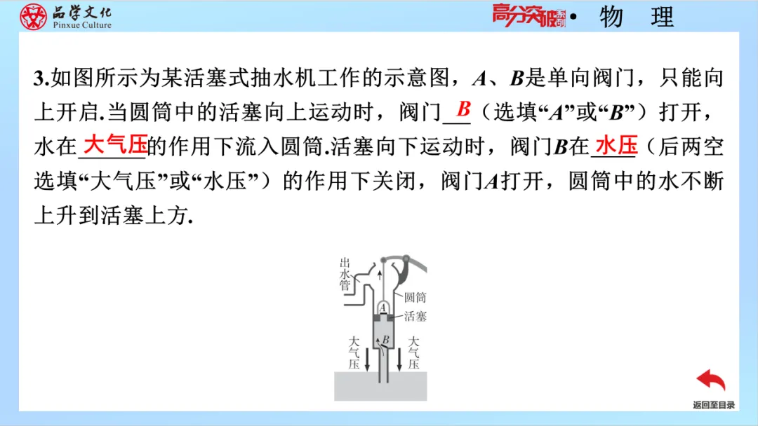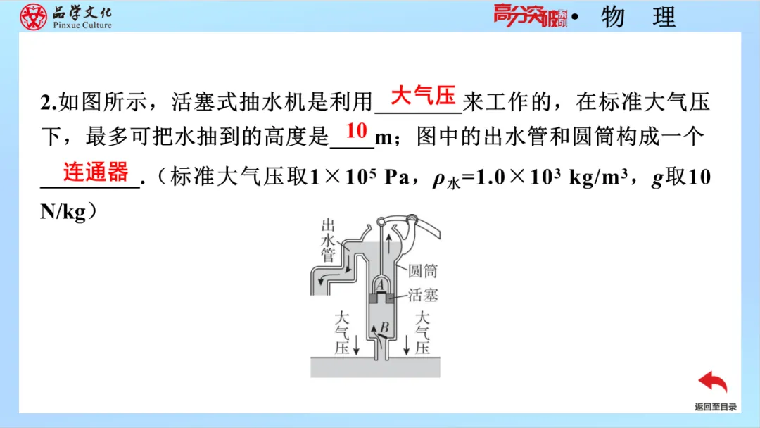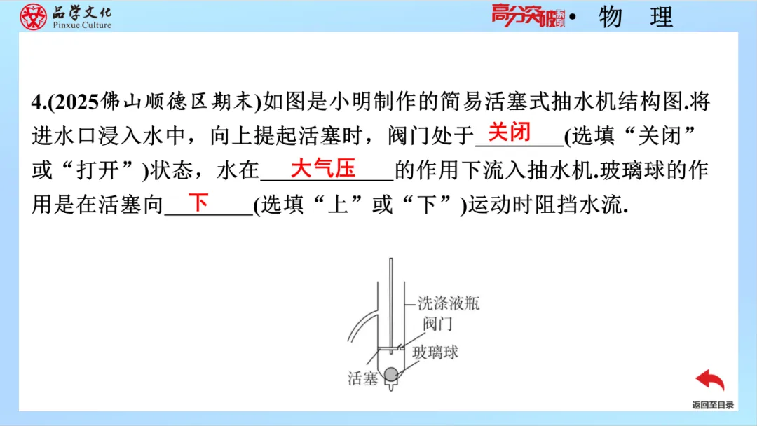 >【物理课件】《第九章 第4节 跨学科实践:制作简易活塞式抽水机》(精练)(附电子版)