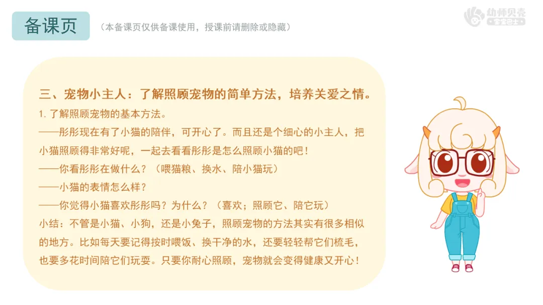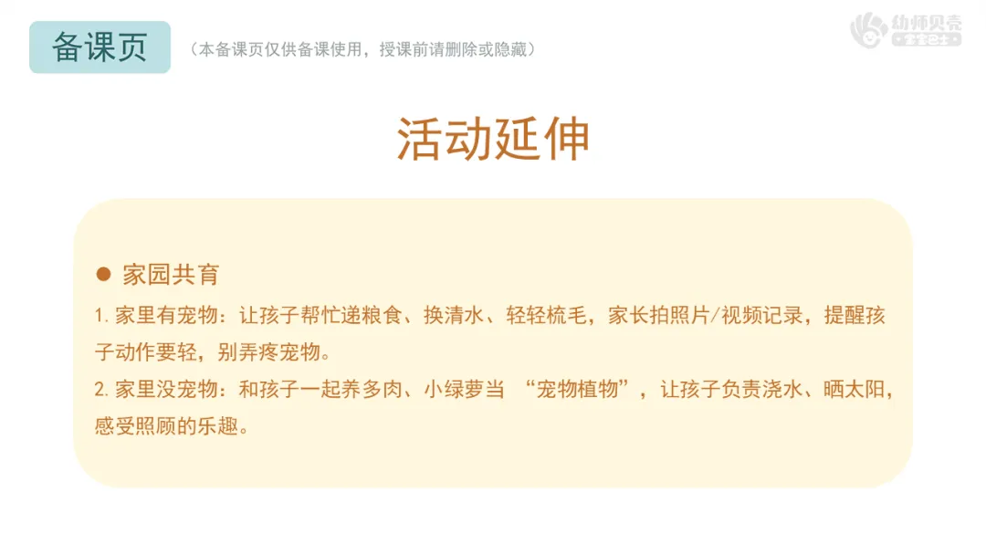 三、宠物小主人:了解照顾宠物的简单方法,培养关爱之情。