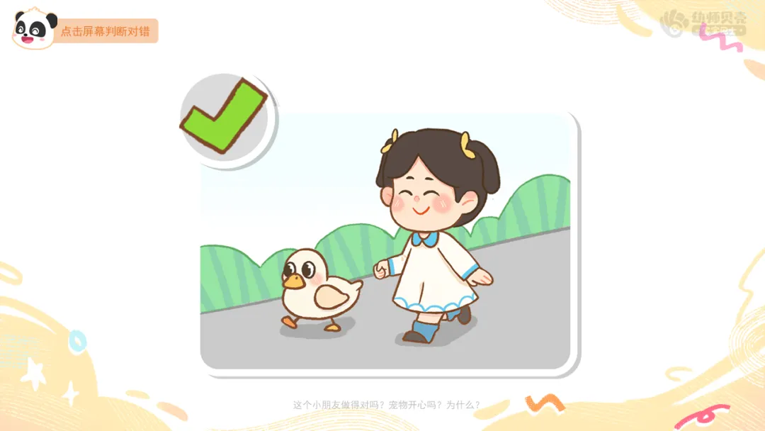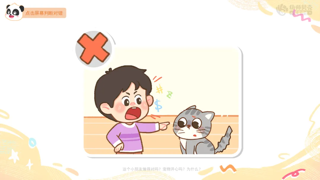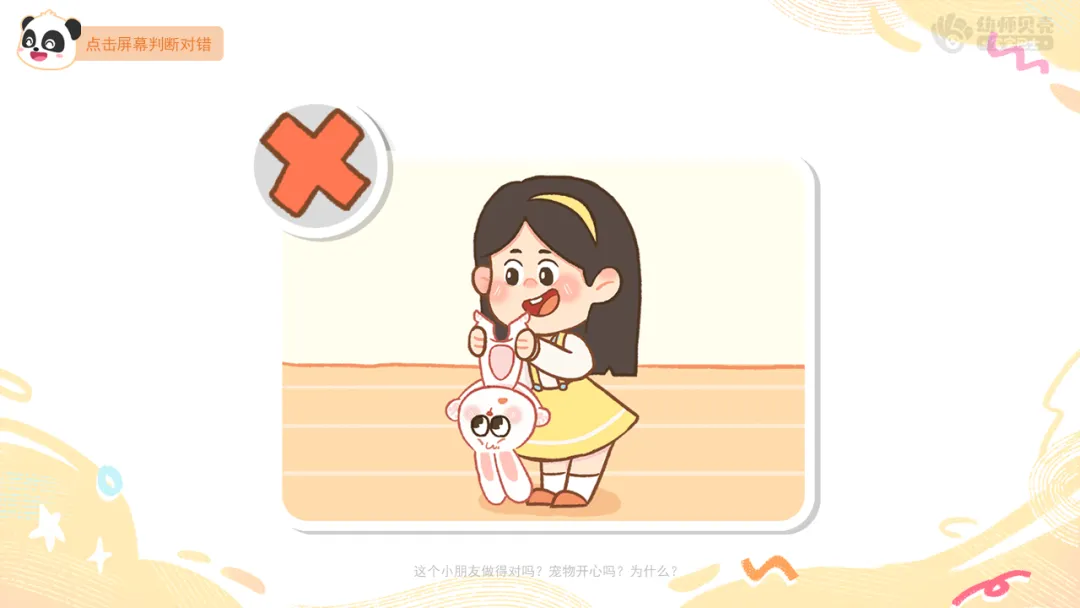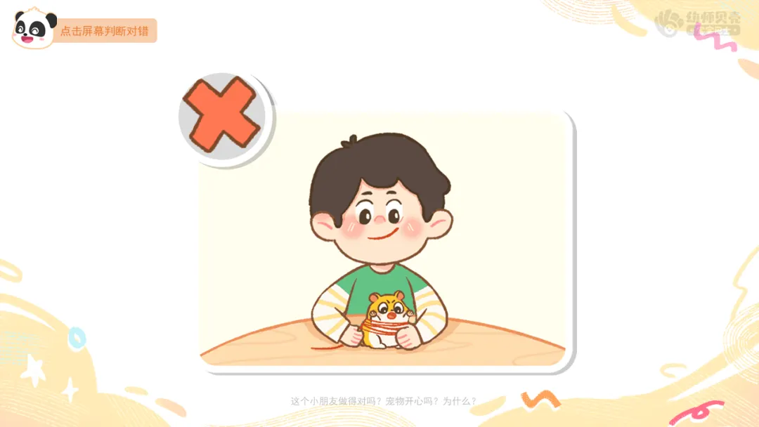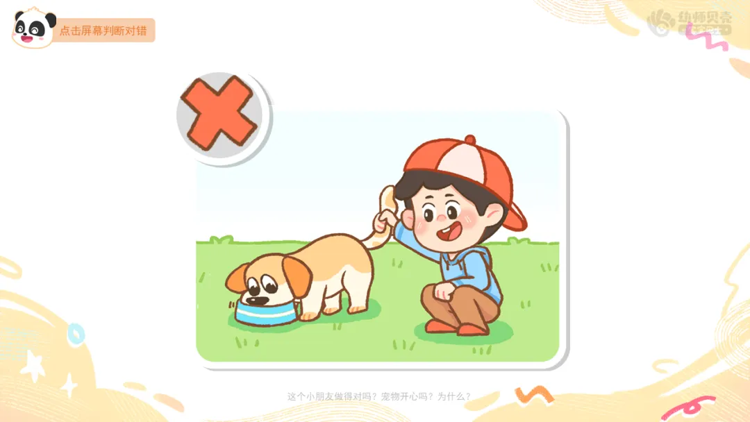 ——这个小朋友做得对吗?宠物开心吗?为什么?
