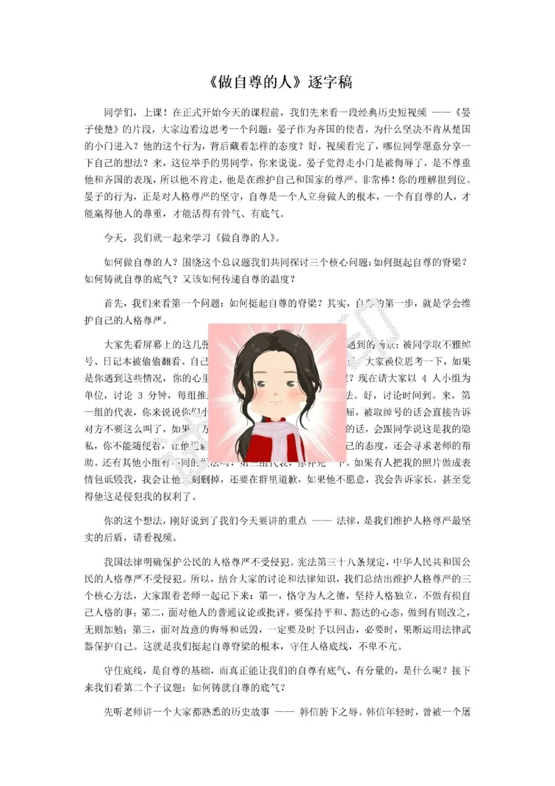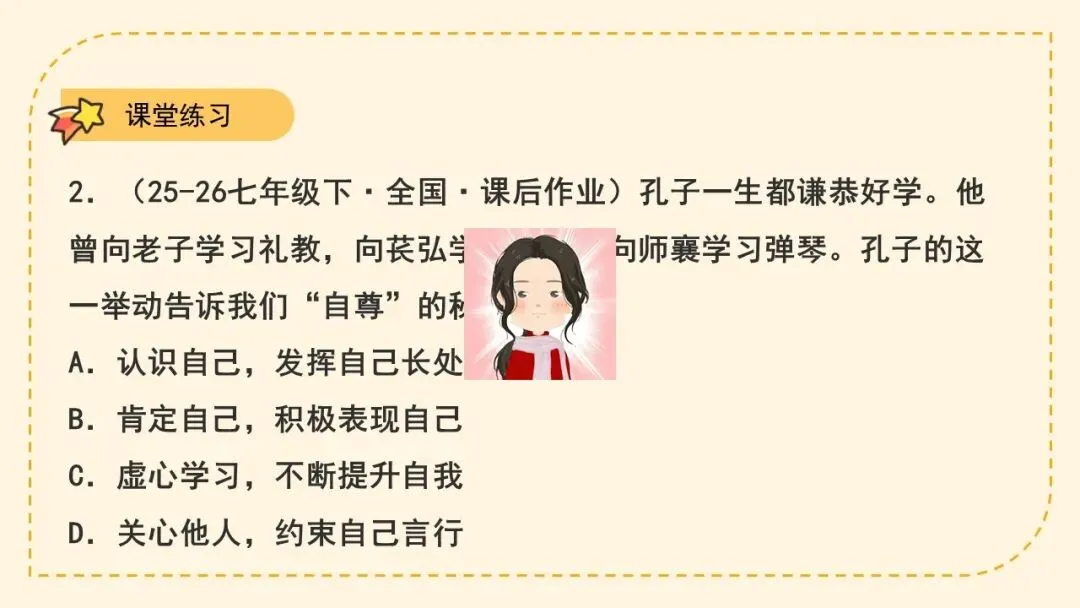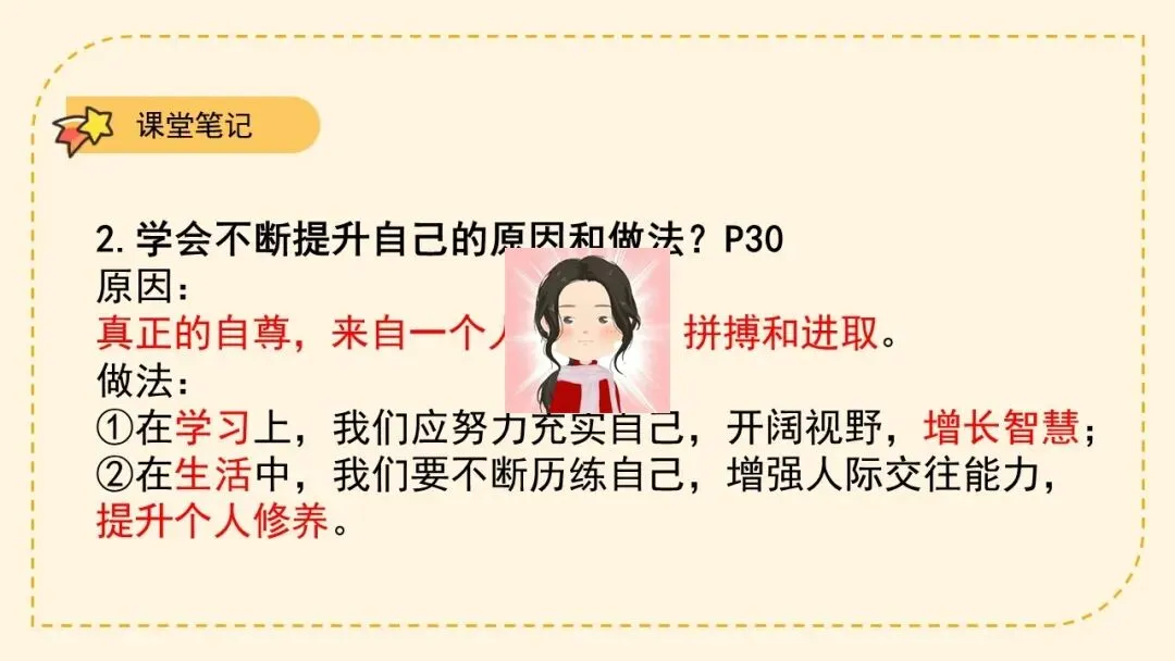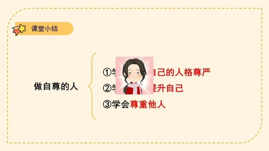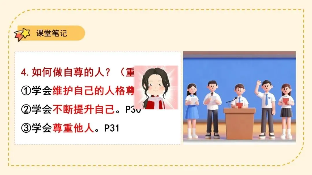 【【数字人讲解】道法七下3.2做自尊的人(课件+教学设计+逐字稿)】 https://www.bilibili.com/video/BV115AMzdEnf/?share_source=copy_web&vd_source=f6bb964ea9ac908e660f66d4f72b4beb