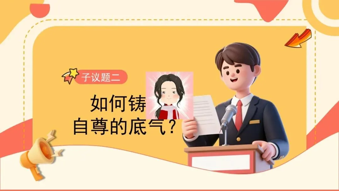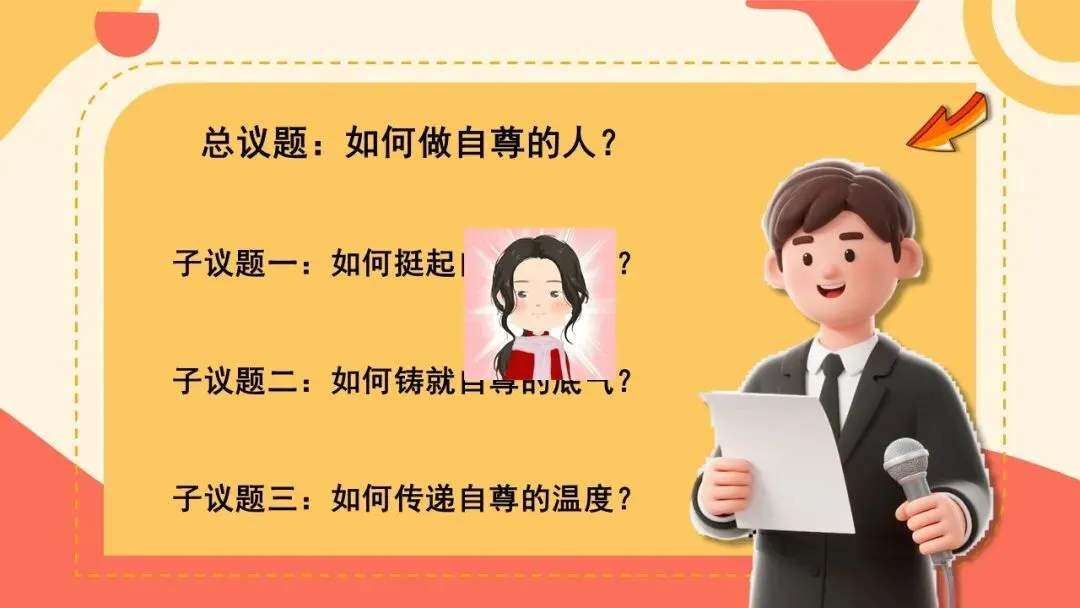 (一)导入新课。播放短视频《晏子使楚》片段,提问学生:“晏子为何坚决不从楚国的小门进入?他的行为体现了什么?” 引导学生思考“人格尊严”的内涵。组织学生自由发言,分享对晏子行为的理解,教师总结:晏子的行为是维护自身和国家尊严的表现,自尊是做人的根本,今天我们就一起学习《做自尊的人》,探讨如何守护自己的尊严,同时学会尊重他人。(二)新课讲授。子议题一:如何挺起自尊的脊梁?子议题二:如何铸就自尊的底气?子议题三:如何传递自尊的温度?