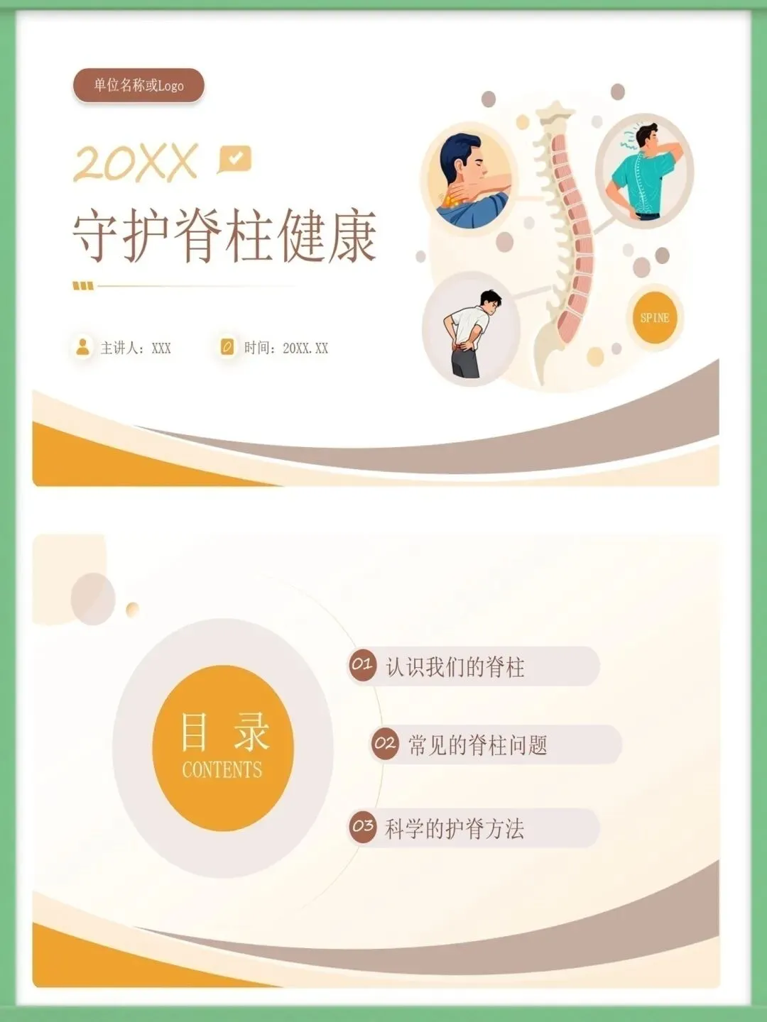 护理ppt模板|脊柱健康宣讲ppt模板课件模板(共35页)
