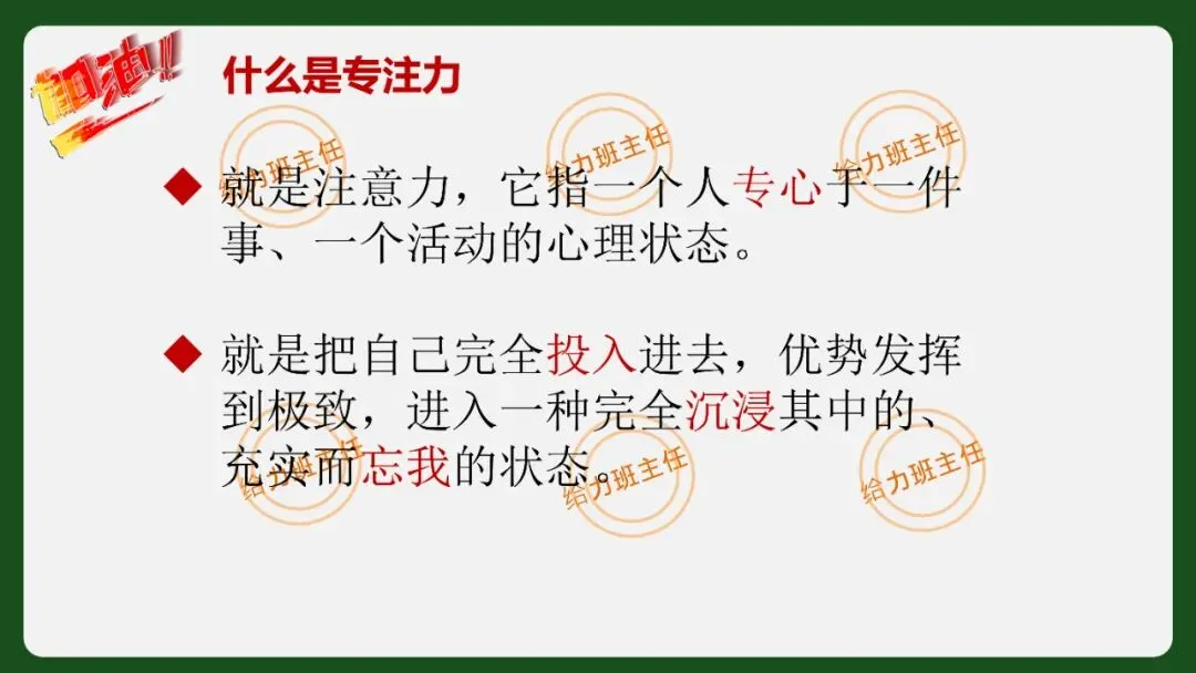 这是一节高效学习学习专注力培养主题班会《提升专注力让学习更高效》。这份资料包括1份课件+