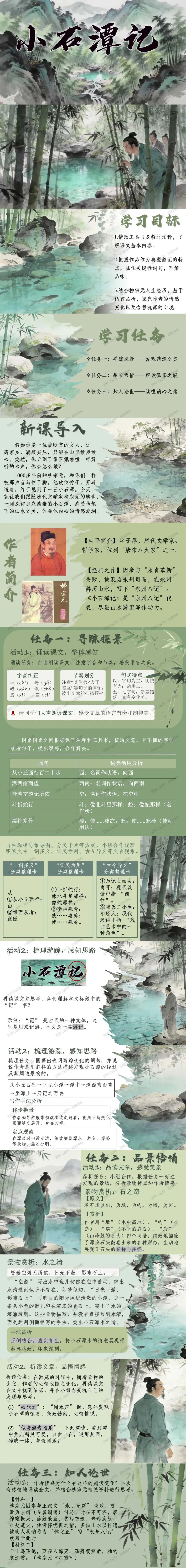 今天要分享的是部编版新教材八年级下册第三单元|《小石潭记》任务型阅读公开课教学设计ppt课件