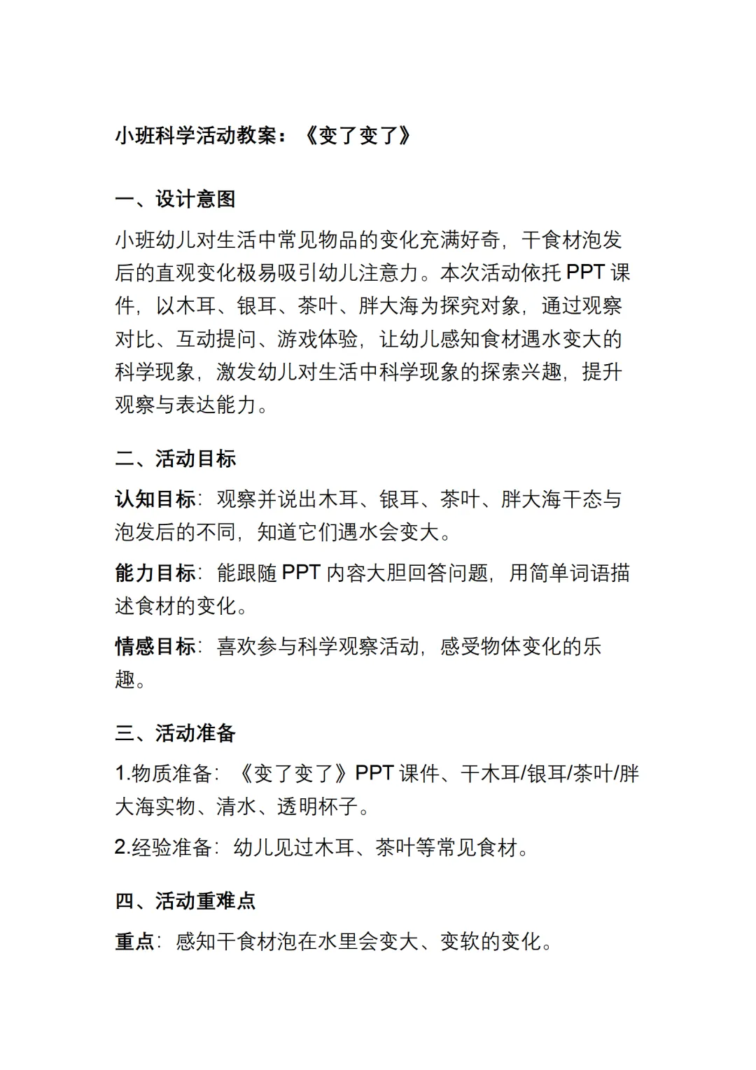 >幼儿园小班科学《变了变了》动态PPT课件+教案+说课稿