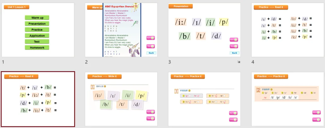 这套音标课件还自带发音哦~值得推荐~三个单元20套。以下展示Unit 1第一节课内容:VIP会员直达:3067