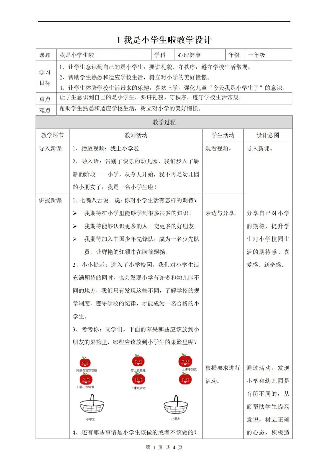教科版《心理健康》一年级上册ppt课件+教学设计,可下载!