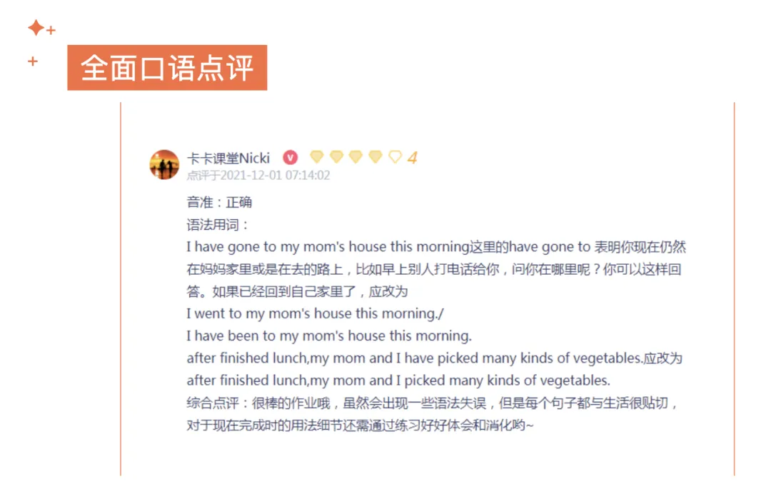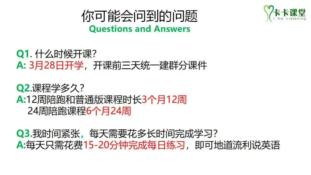 除每天在线答疑,每周有1节卡卡老师周末直播课,直播课梳理应用练习本周所学知识