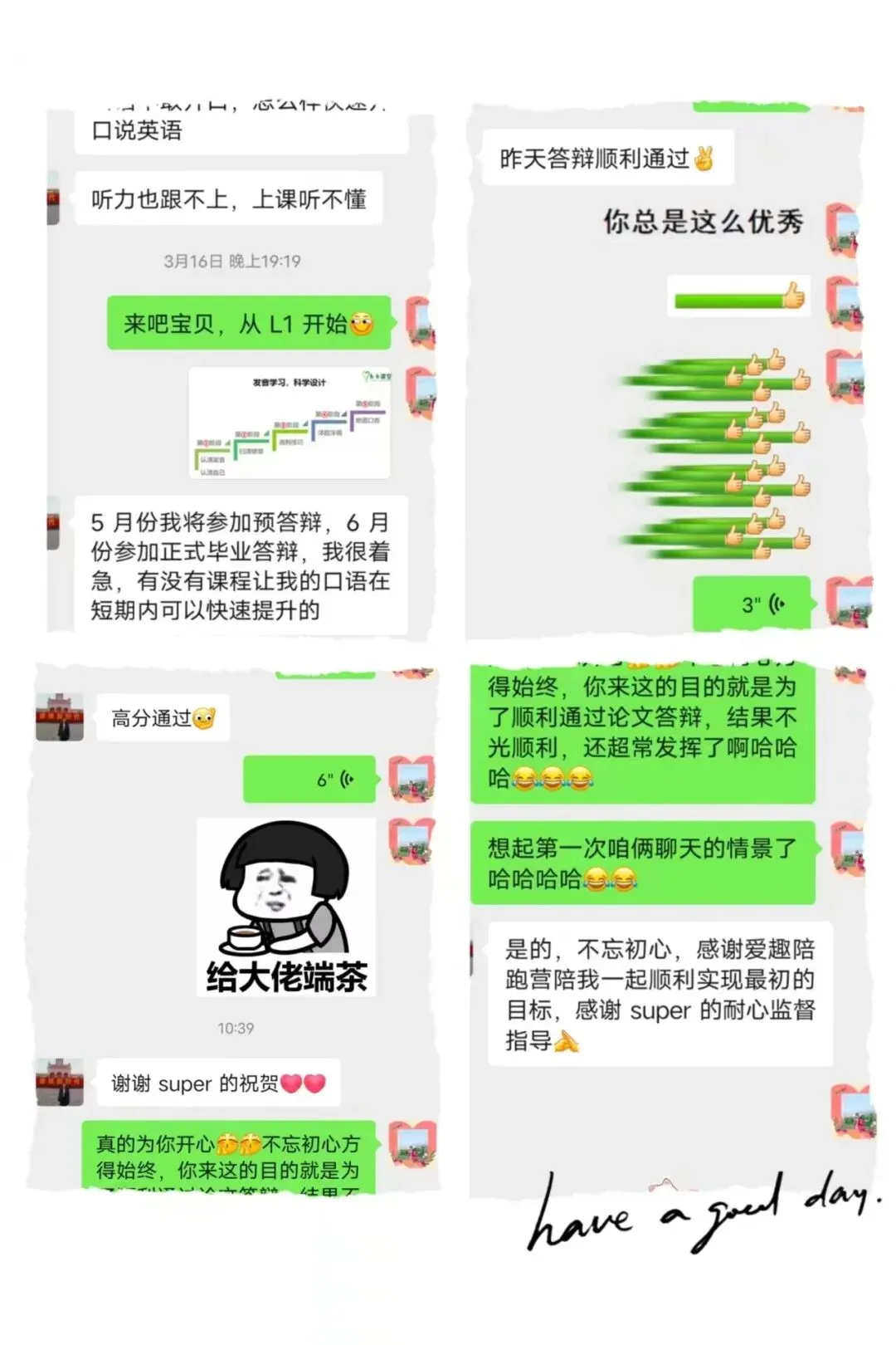 以下是两位班班在结课时,对同学们的寄语