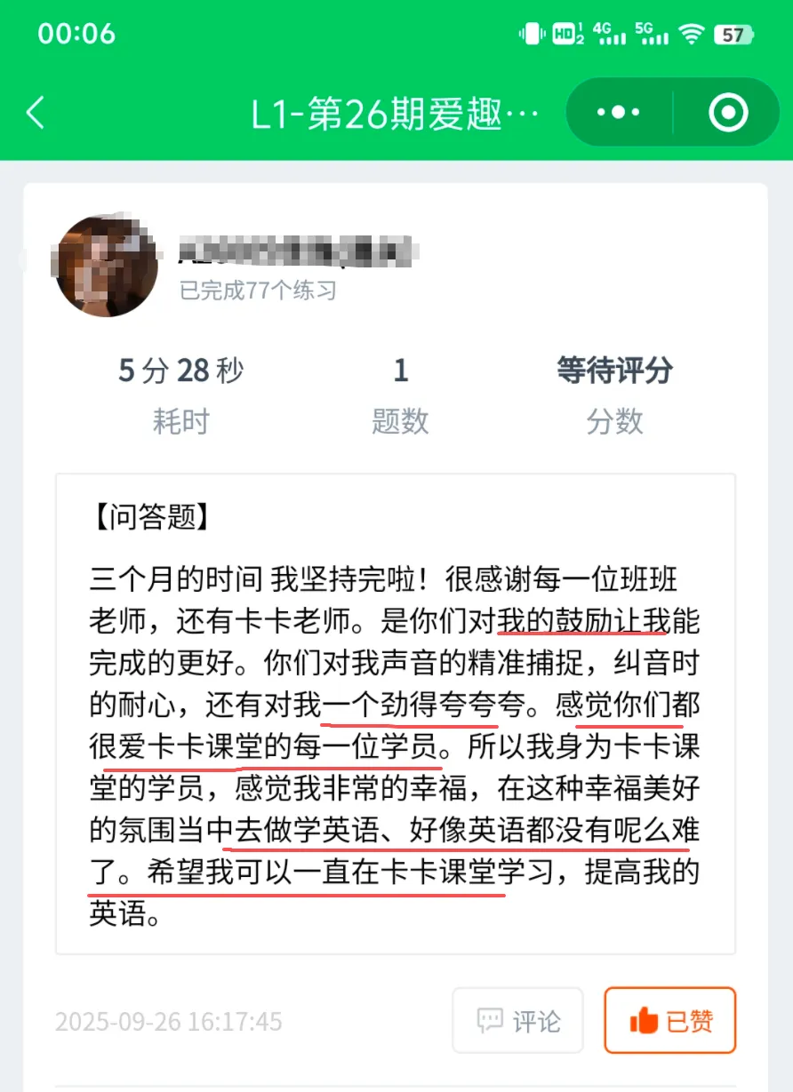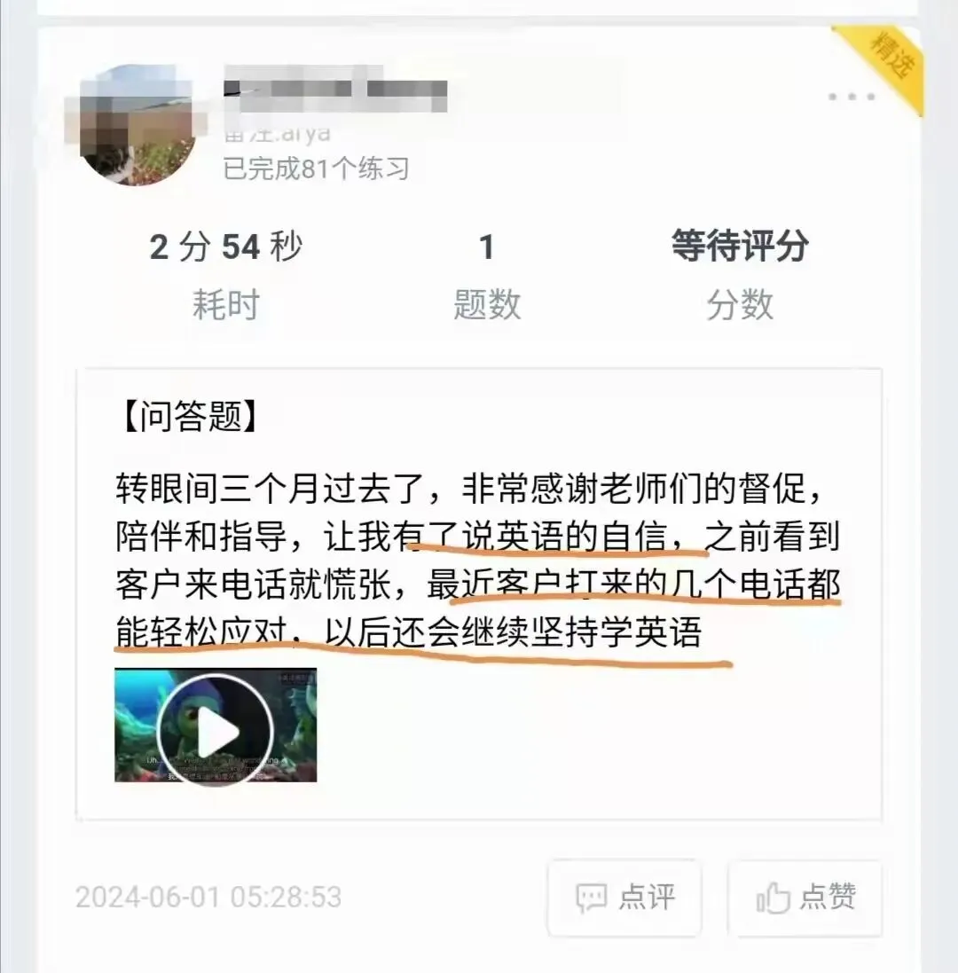 每周的作业中,小伙伴们都会用视频记录自己在英语上的收获;