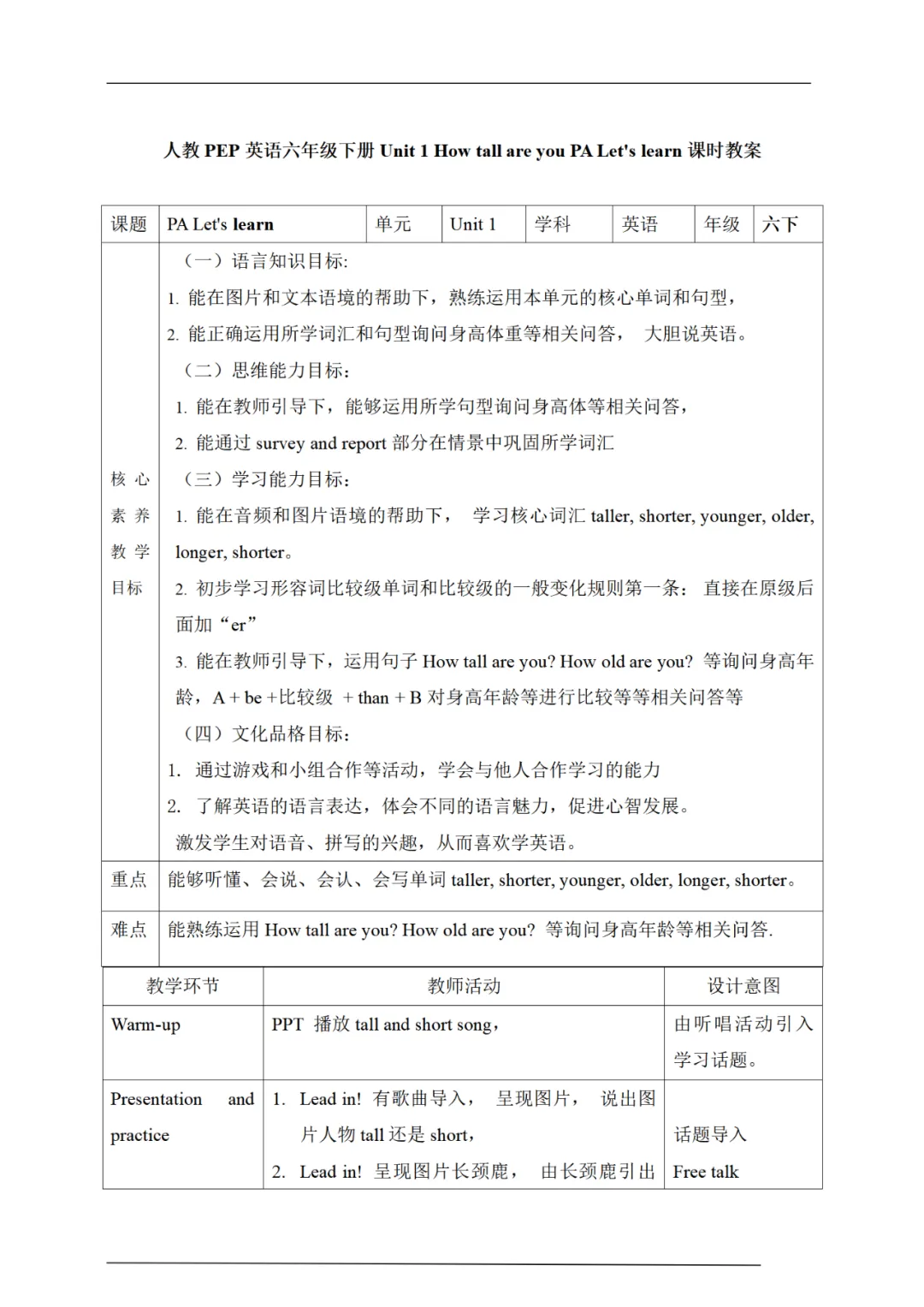 人教版PEP英语六年级下册-课件教案【核心素养】