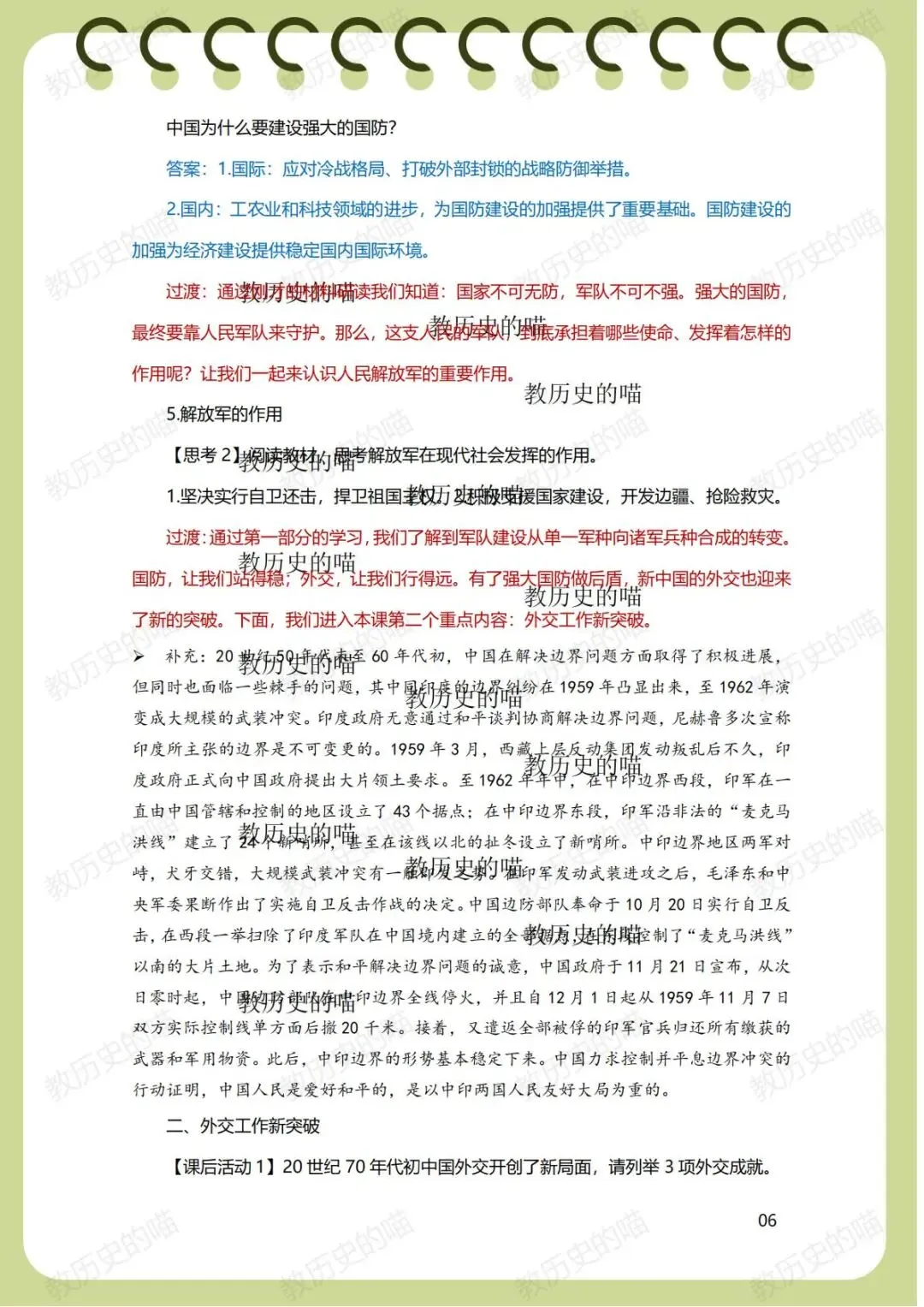 强大国防是外交底气,和平外交为发展护航一堂有高度、有温度、学生爱听的历史课💯