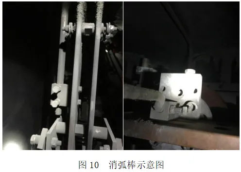④消弧杆过渡是否平滑,有无横向受力,螺栓是否紧固,有无松动;如图10