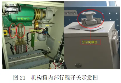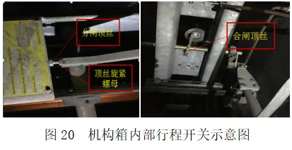 ③如若隔离开关传动机构已调整至极限位置,仍出现撞击声,则联系高压专业调整机构箱内行程开关。如图20