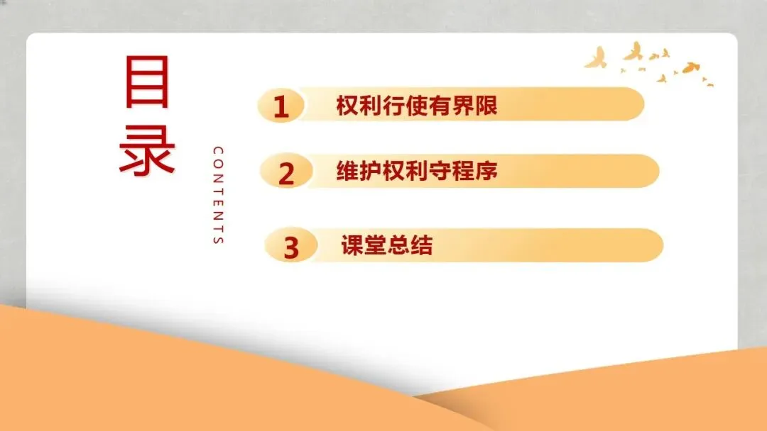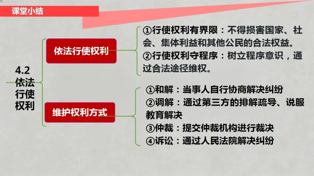 2.价值引领:依法行使权利是公民责任,依法维护权利是公民素养,尊重他人权利是社会美德。