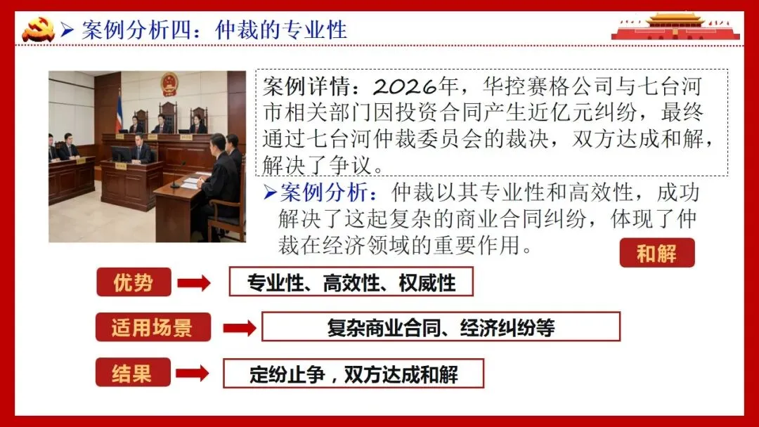 2.展示案例:企业亿元投资合同纠纷,通过仲裁高效解决。